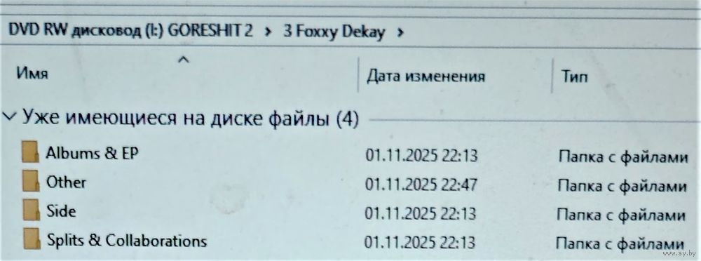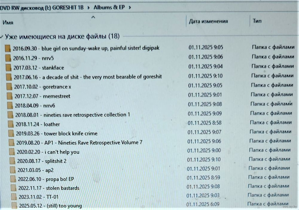 Контент - см. фото. При наличии таковых в треки вшиты обложки альбомов. Качество 320 kbps (если напротив названия альбома не указано иное). Покупателям, совершившим покупки на сумму от 50 до 100 руб. скидка 5%, от 101 до 200 руб. - 10%, более 201 руб. - 20%. Заказы на сумму менее 5 руб. с 2024 г. не высылаю. Ознакомиться с творчеством можно здесь: https://musify.club/artist/goreshit-52397/discography; https://musify.club/artist/wounder-80703/discography; https://musify.club/artist/evil-activities-199293/discography; https://musify.club/artist/foxxy-dekay-125085/discography