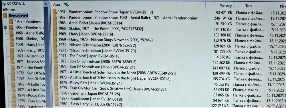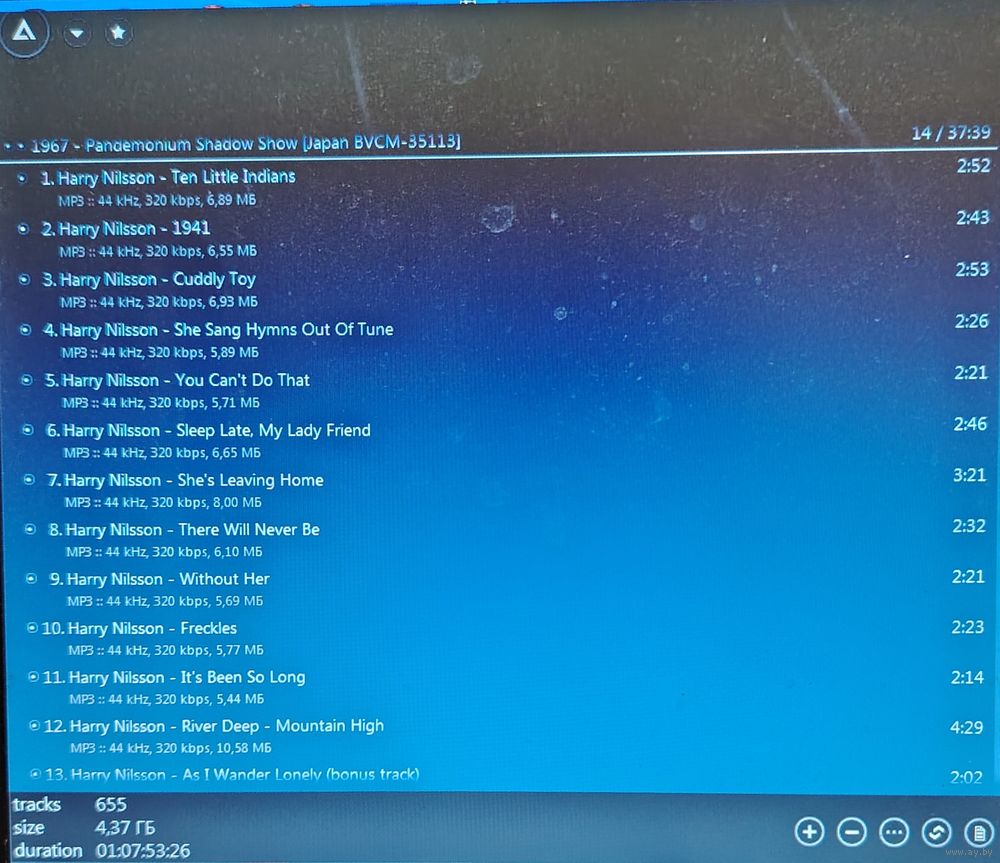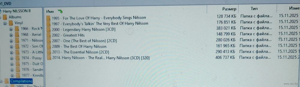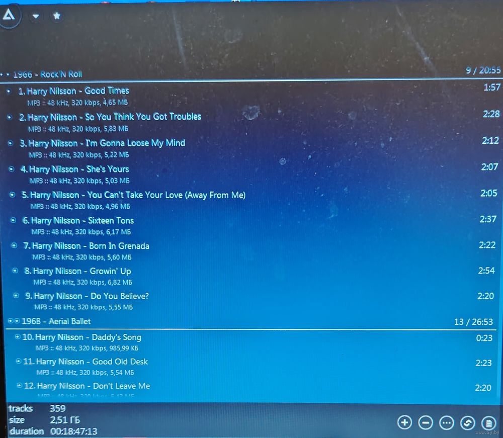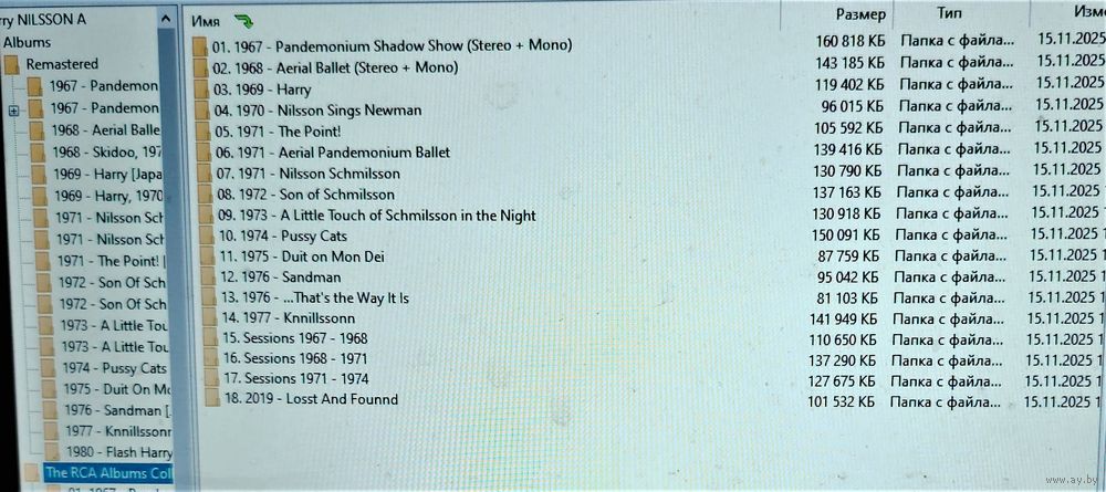 Контент - см. фото конвертов. Скриншоты проверки на считываемость также представлены на фото. Качество 320 kbps (если напротив названия альбома не указано иное). Ознакомиться с творчеством можно здесь: https://musify.club/artist/harry-nilsson-1195/discography.