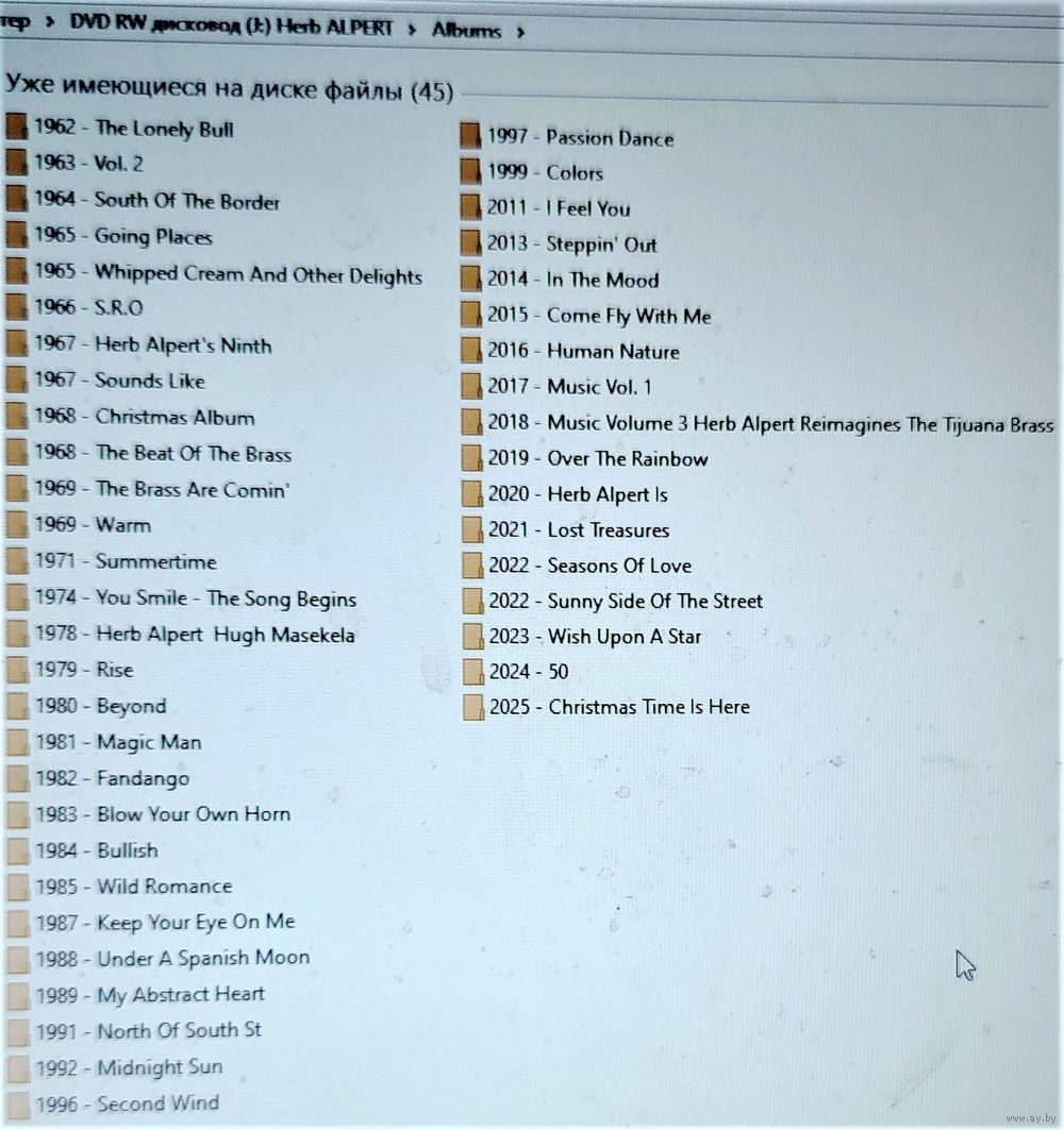 DVD МР3 студийная дискография Herb ALPERT на 1-м DVD.