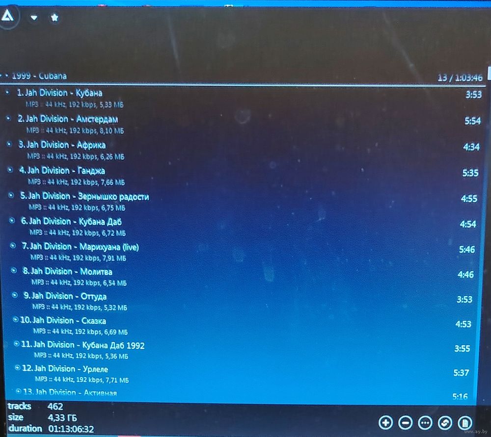 Уважаемые потенциальные покупатели, посетители данного аукциона и просто хорошие люди, случайно открывшие данную страничку! Возможно, начальная цена на данный лот покажется Вам слишком высокой, но тому есть несколько причин: 1) качественно записать DVD MP3 диск не так просто, как может показаться на первый взгляд - подбор контента, тщательная проверка и редактирование файлов и папок, правильный подбор файловой системы для того, чтобы диск воспроизводился на всех устройствах, поддерживающих DVD формат и многие другие нюансы; 2) в последнее время стоимость чистых DVD-R дисков значительно возросла; 3) выставляя лот, я даю 100% гарантию читаемости данного диска, что подтверждается строкой AIMP плеера, который никогда не выдаст конечный результат (общее время, количество треков и занимаемое место музыкальными файлами на диске), если хотя бы один файл во время сканирования либо не считался, либо "подвис". Надеюсь на Ваше понимание.