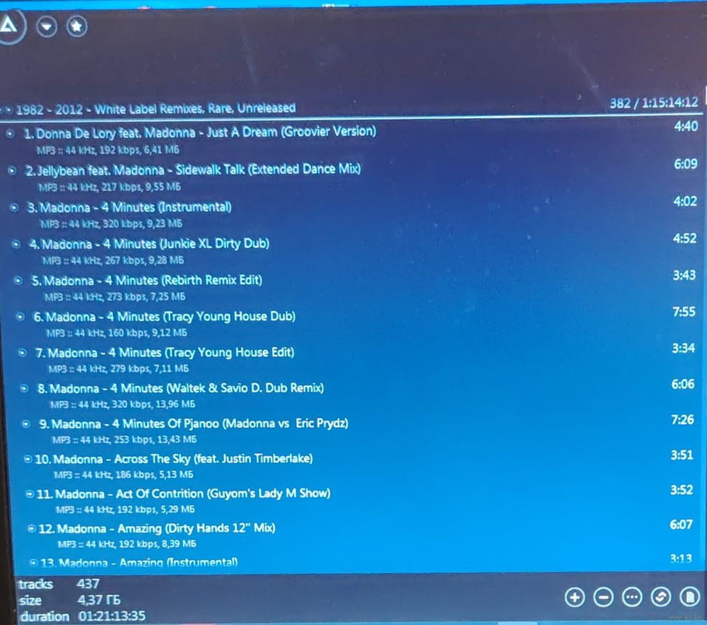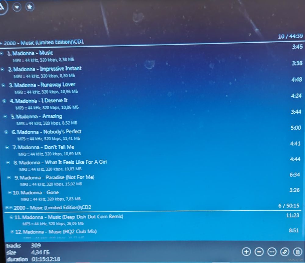 Уважаемые потенциальные покупатели, посетители данного аукциона и просто хорошие люди, случайно открывшие данную страничку! Возможно, начальная цена на данный лот покажется Вам слишком высокой, но тому есть несколько причин: 1) качественно записать DVD MP3 диск не так просто, как может показаться на первый взгляд - подбор контента, тщательная проверка и редактирование файлов и папок, правильный подбор файловой системы для того, чтобы диск воспроизводился на всех устройствах, поддерживающих DVD формат и многие другие нюансы; 2) в последнее время стоимость чистых DVD-R дисков значительно возросла; 3) выставляя лот, я даю 100% гарантию читаемости данного диска, что подтверждается строкой AIMP плеера, который никогда не выдаст конечный результат (общее время, количество треков и занимаемое место музыкальными файлами на диске), если хотя бы один файл во время сканирования либо не считался, либо "подвис". Надеюсь на Ваше понимание.
