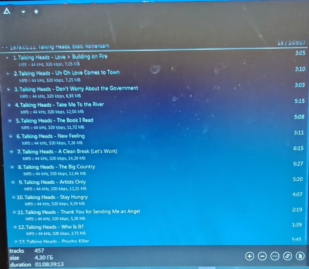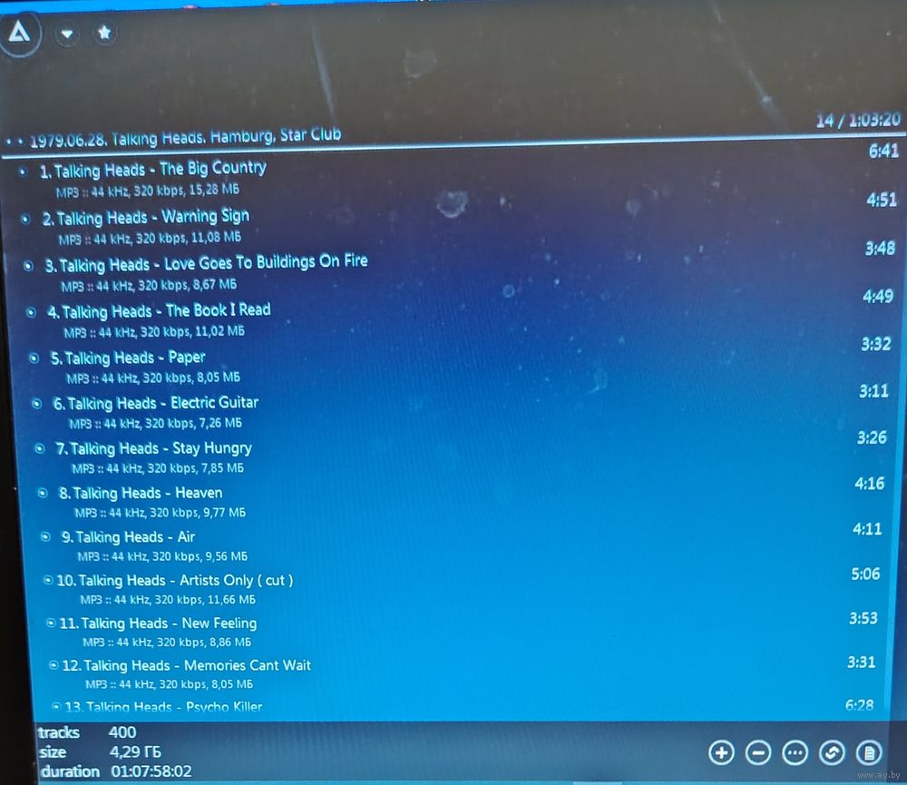 Уважаемые потенциальные покупатели, посетители данного аукциона и просто хорошие люди, случайно открывшие данную страничку! Возможно, начальная цена на данный лот покажется Вам слишком высокой, но тому есть несколько причин: 1) качественно записать DVD MP3 диск не так просто, как может показаться на первый взгляд - подбор контента, тщательная проверка и редактирование файлов и папок, правильный подбор файловой системы для того, чтобы диск воспроизводился на всех устройствах, поддерживающих DVD формат и многие другие нюансы; 2) в последнее время стоимость чистых DVD-R дисков значительно возросла; 3) выставляя лот, я даю 100% гарантию читаемости данного диска, что подтверждается строкой AIMP плеера, который никогда не выдаст конечный результат (общее время, количество треков и занимаемое место музыкальными файлами на диске), если хотя бы один файл во время сканирования либо не считался, либо "подвис". Надеюсь на Ваше понимание.