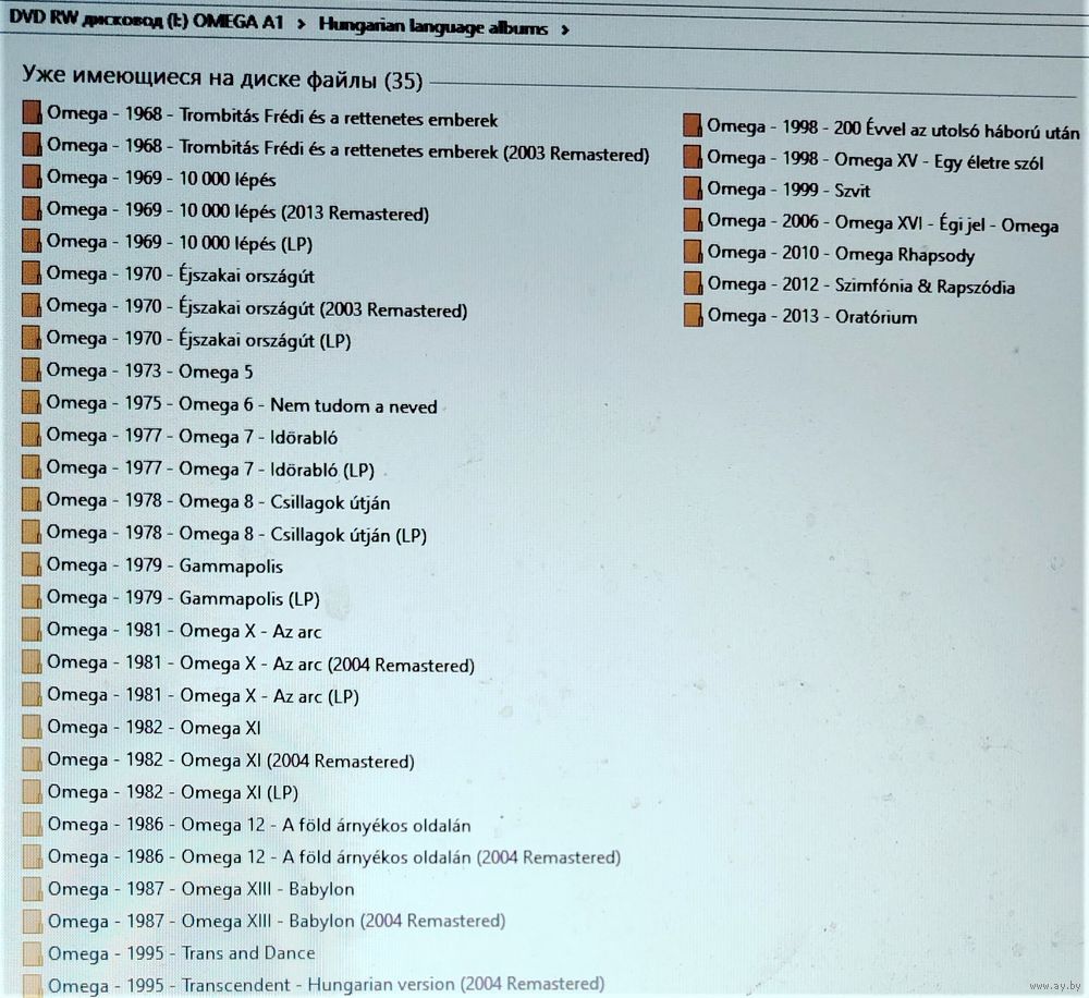 DVD МР3 полная дискография OMEGA (Hungary) - 2 диска - DVD9 (двусторонний) + DVD5.