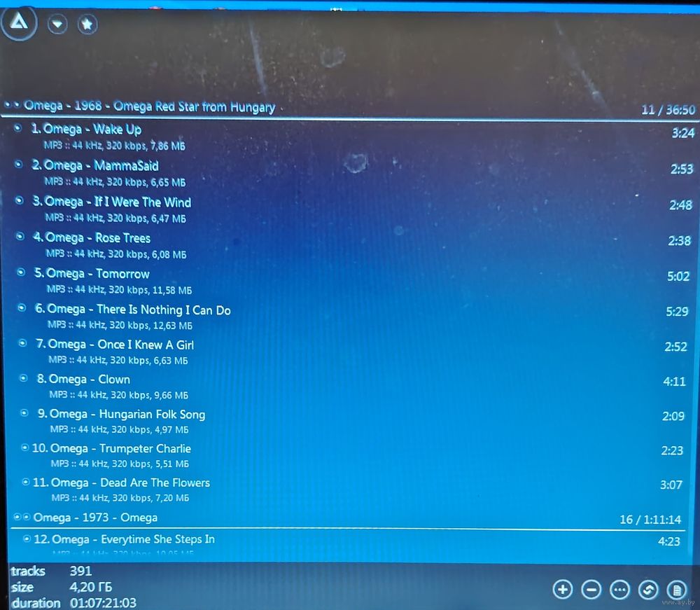 Контент - см. фото. При наличии таковых в треки вшиты обложки альбомов. Качество 320 kbps (если напротив названия альбома не указано иное). Покупателям, совершившим покупки на сумму от 50 до 100 руб. скидка 5%, от 101 до 200 руб. - 10%, более 201 руб. - 20%. Заказы на сумму менее 5 руб. с 2024 г. не высылаю. Ознакомиться с творчеством можно здесь: https://musify.club/artist/omega-27215/discography
