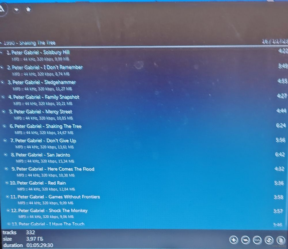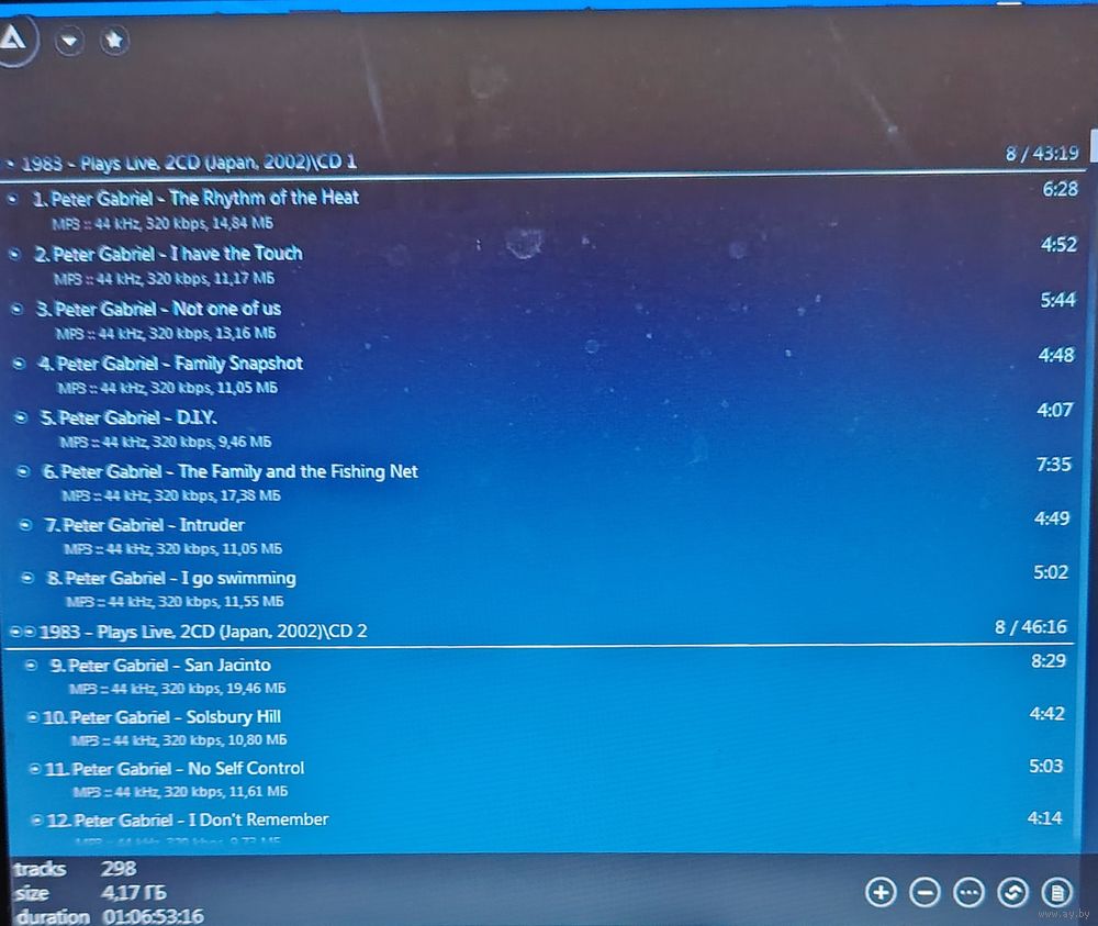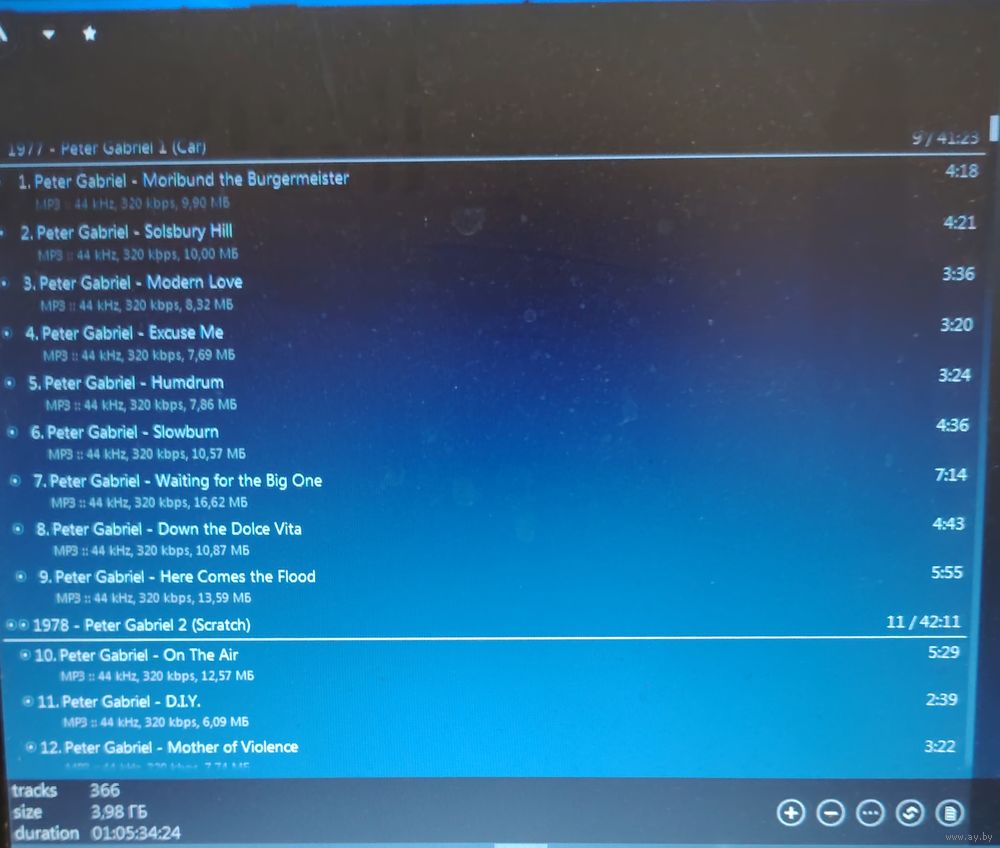 При наличии таковых в треки вшиты обложки альбомов. Качество 320 kbps (если напротив названия альбома не указано иное). Покупателям, совершившим покупки на сумму от 50 до 100 руб. скидка 5%, от 101 до 200 руб. - 10%, более 201 руб. - 20%. Заказы на сумму менее 5 руб. с 2024 г. не высылаю. Ознакомиться с творчеством можно здесь: https://musify.club/artist/peter-gabriel-202/discography