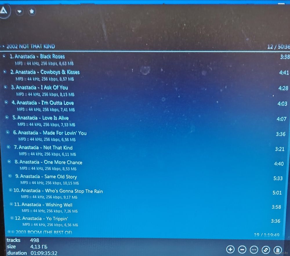 Уважаемые потенциальные покупатели, посетители данного аукциона и просто хорошие люди, случайно открывшие данную страничку! Возможно, начальная цена на данный лот покажется Вам слишком высокой, но тому есть несколько причин: 1) качественно записать DVD MP3 диск не так просто, как может показаться на первый взгляд - подбор контента, тщательная проверка и редактирование файлов и папок, правильный подбор файловой системы для того, чтобы диск воспроизводился на всех устройствах, поддерживающих DVD формат и многие другие нюансы; 2) в последнее время стоимость чистых DVD-R дисков значительно возросла; 3) выставляя лот, я даю 100% гарантию читаемости данного диска, что подтверждается строкой AIMP плеера, который никогда не выдаст конечный результат (общее время, количество треков и занимаемое место музыкальными файлами на диске), если хотя бы один файл во время сканирования либо не считался, либо "подвис". Надеюсь на Ваше понимание.