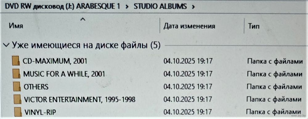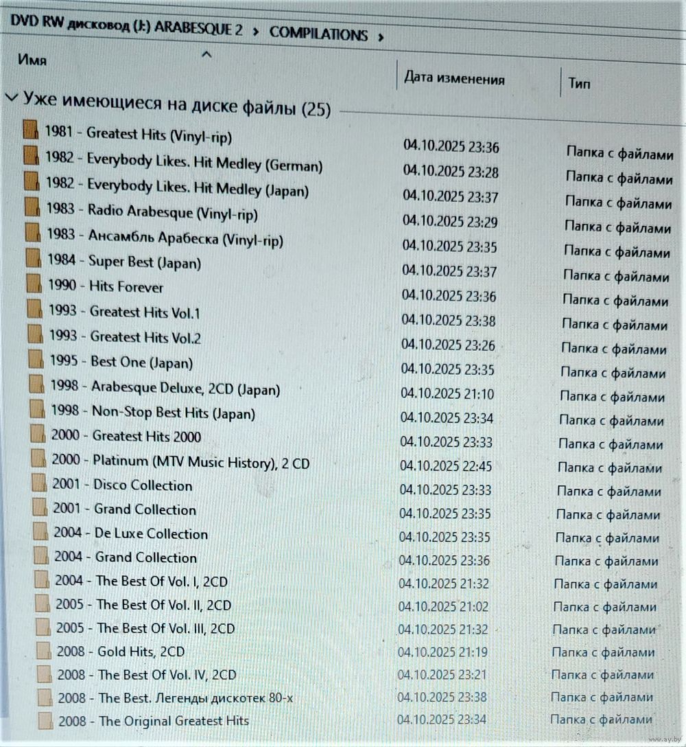 Контент см. фото конверта и скриншотов с экрана. При наличии таковых в треки вшиты обложки альбомов. Качество 320 kbps (если напротив названия альбома не указано иное). Покупателям, совершившим покупки на сумму от 50 до 100 руб. скидка 5%, от 101 до 200 руб. - 10%, более 201 руб. - 20%. Заказы на сумму менее 5 руб. с 2024 г. не высылаю. Ознакомиться с творчеством можно здесь: https://musify.club/artist/arabesque-16152/discography