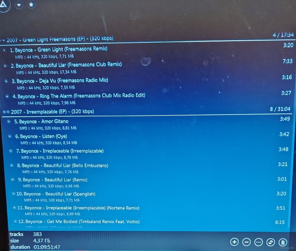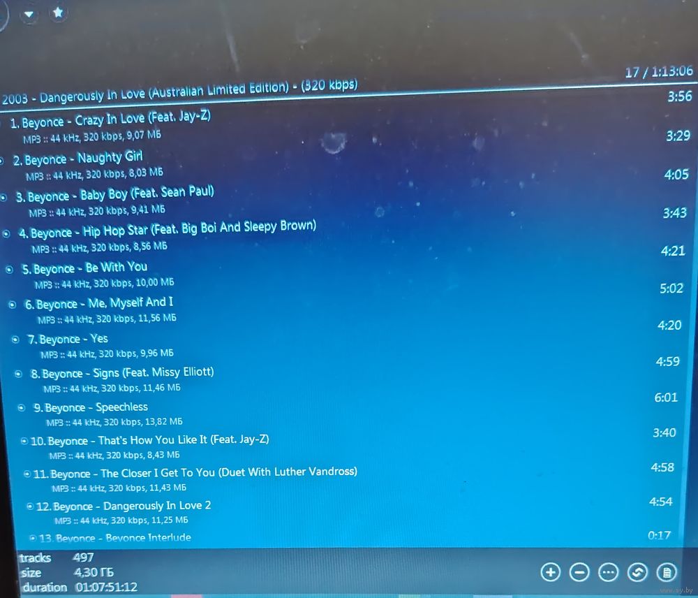 Уважаемые потенциальные покупатели, посетители данного аукциона и просто хорошие люди, случайно открывшие данную страничку! Возможно, начальная цена на данный лот покажется Вам слишком высокой, но тому есть несколько причин: 1) качественно записать DVD MP3 диск не так просто, как может показаться на первый взгляд - подбор контента, тщательная проверка и редактирование файлов и папок, правильный подбор файловой системы для того, чтобы диск воспроизводился на всех устройствах, поддерживающих DVD формат и многие другие нюансы; 2) в последнее время стоимость чистых DVD-R дисков значительно возросла; 3) выставляя лот, я даю 100% гарантию читаемости данного диска, что подтверждается строкой AIMP плеера, который никогда не выдаст конечный результат (общее время, количество треков и занимаемое место музыкальными файлами на диске), если хотя бы один файл во время сканирования либо не считался, либо "подвис". Надеюсь на Ваше понимание.