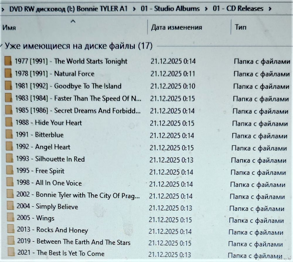 Контент см. фото. При наличии таковых в треки вшиты обложки альбомов. Качество 320 kbps (если напротив названия альбома не указано иное). Покупателям, совершившим покупки на сумму от 50 до 100 руб. скидка 5%, от 101 до 200 руб. - 10%, более 201 руб. - 20%. Заказы на сумму менее 5 руб. с 2024 г. не высылаю.