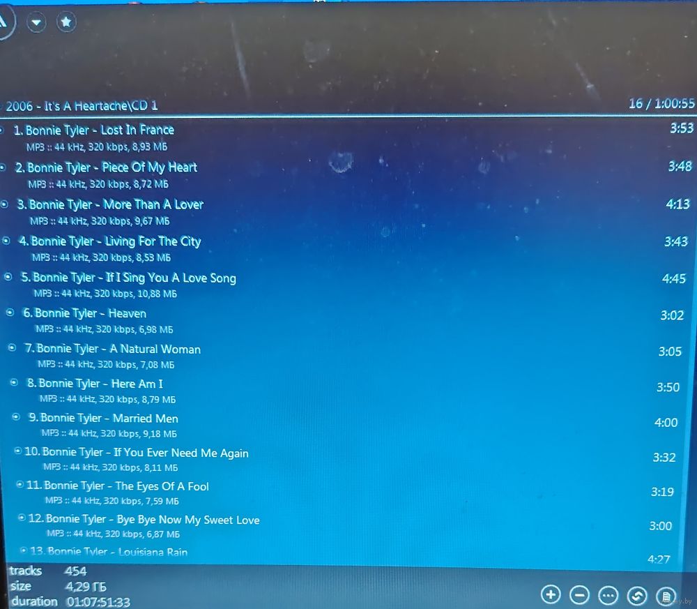 Уважаемые потенциальные покупатели, посетители данного аукциона и просто хорошие люди, случайно открывшие данную страничку! Возможно, начальная цена на данный лот покажется Вам слишком высокой, но тому есть несколько причин: 1) качественно записать DVD MP3 диск не так просто, как может показаться на первый взгляд - подбор контента, тщательная проверка и редактирование файлов и папок, правильный подбор файловой системы для того, чтобы диск воспроизводился на всех устройствах, поддерживающих DVD формат и многие другие нюансы; 2) в последнее время стоимость чистых DVD-R дисков значительно возросла; 3) выставляя лот, я даю 100% гарантию читаемости данного диска, что подтверждается строкой AIMP плеера, который никогда не выдаст конечный результат (общее время, количество треков и занимаемое место музыкальными файлами на диске), если хотя бы один файл во время сканирования либо не считался, либо "подвис". Надеюсь на Ваше понимание.