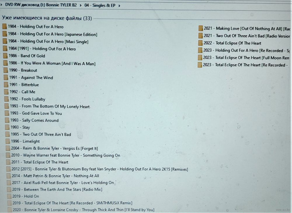 DVD MP3 полная дискография - Bonnie TYLER - 2 DVD-9
