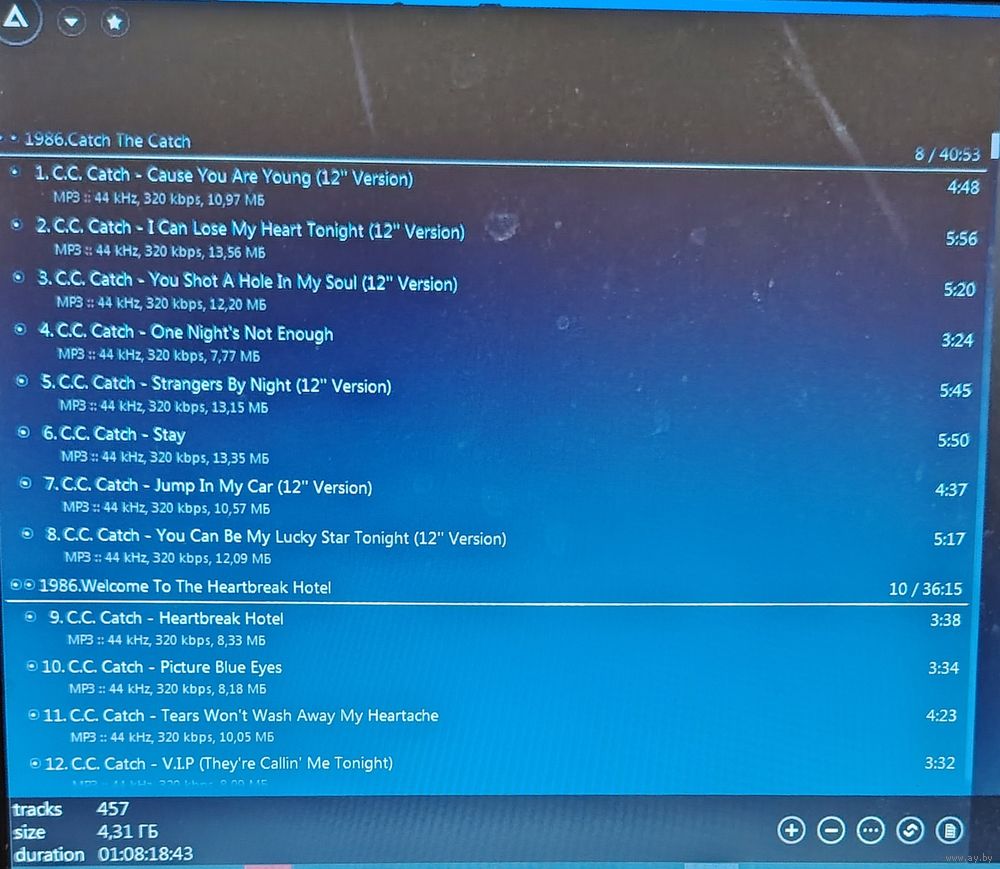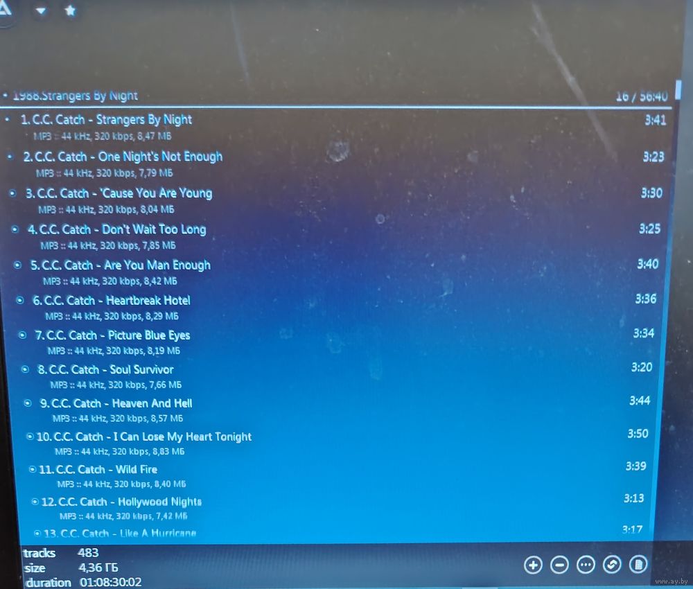 Контент см. фото конверта и скриншотов с экрана. При наличии таковых в треки вшиты обложки альбомов. Качество 320 kbps (если напротив названия альбома не указано иное). Покупателям, совершившим покупки на сумму от 50 до 100 руб. скидка 5%, от 101 до 200 руб. - 10%, более 201 руб. - 20%. Заказы на сумму менее 5 руб. с 2024 г. не высылаю. Ознакомиться с творчеством можно здесь: https://musify.club/artist/c-c-catch-1008/discography