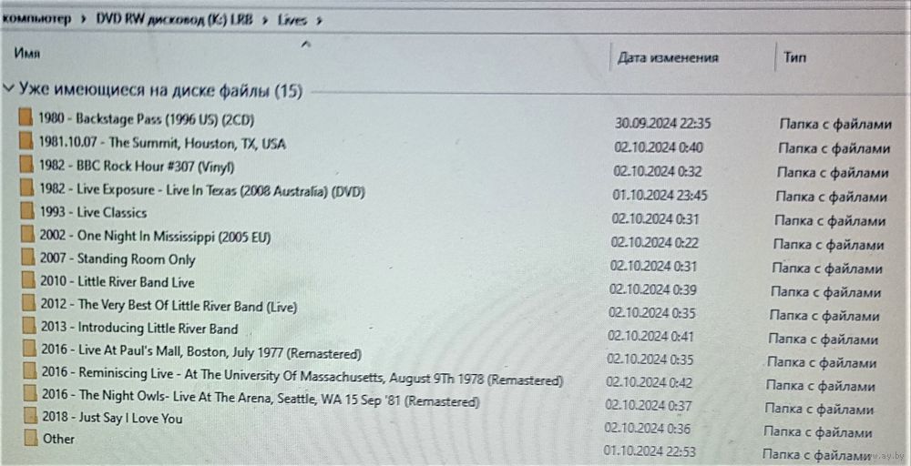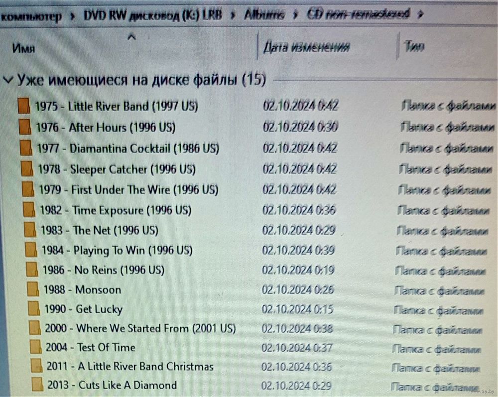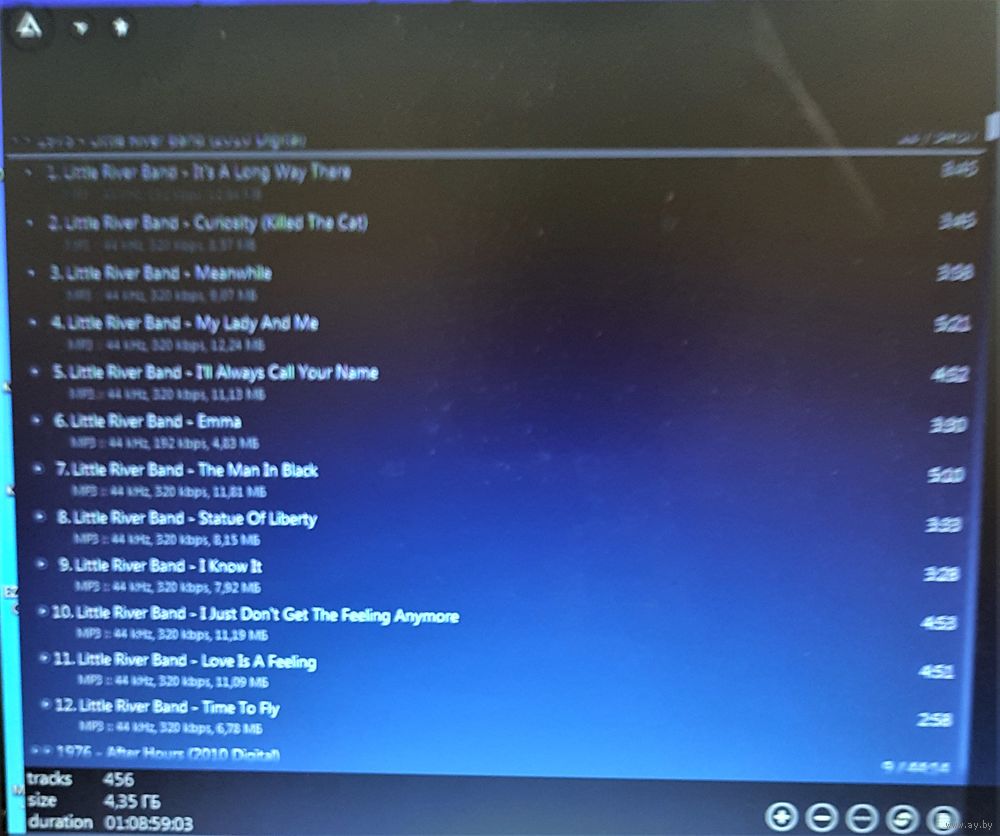 Контент см. фото конверта и скриншотов с экрана. При наличии таковых в треки вшиты обложки альбомов. Качество 320 kbps (если напротив названия альбома не указано иное). Покупателям, совершившим покупки на сумму от 50 до 100 руб. скидка 5%, от 101 до 200 руб. - 10%, более 201 руб. - 20%. Заказы на сумму менее 5 руб. с 2024 г. не высылаю. Ознакомиться с творчеством можно здесь: https://musify.club/artist/little-river-band-57959/releases