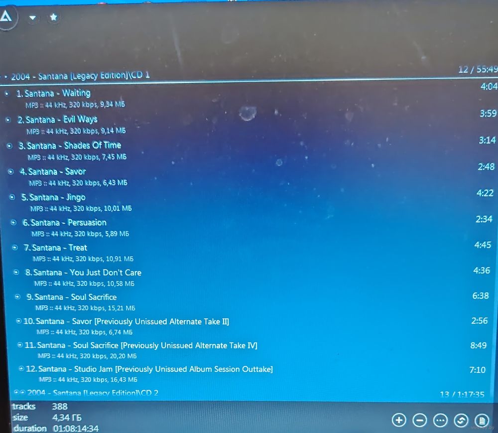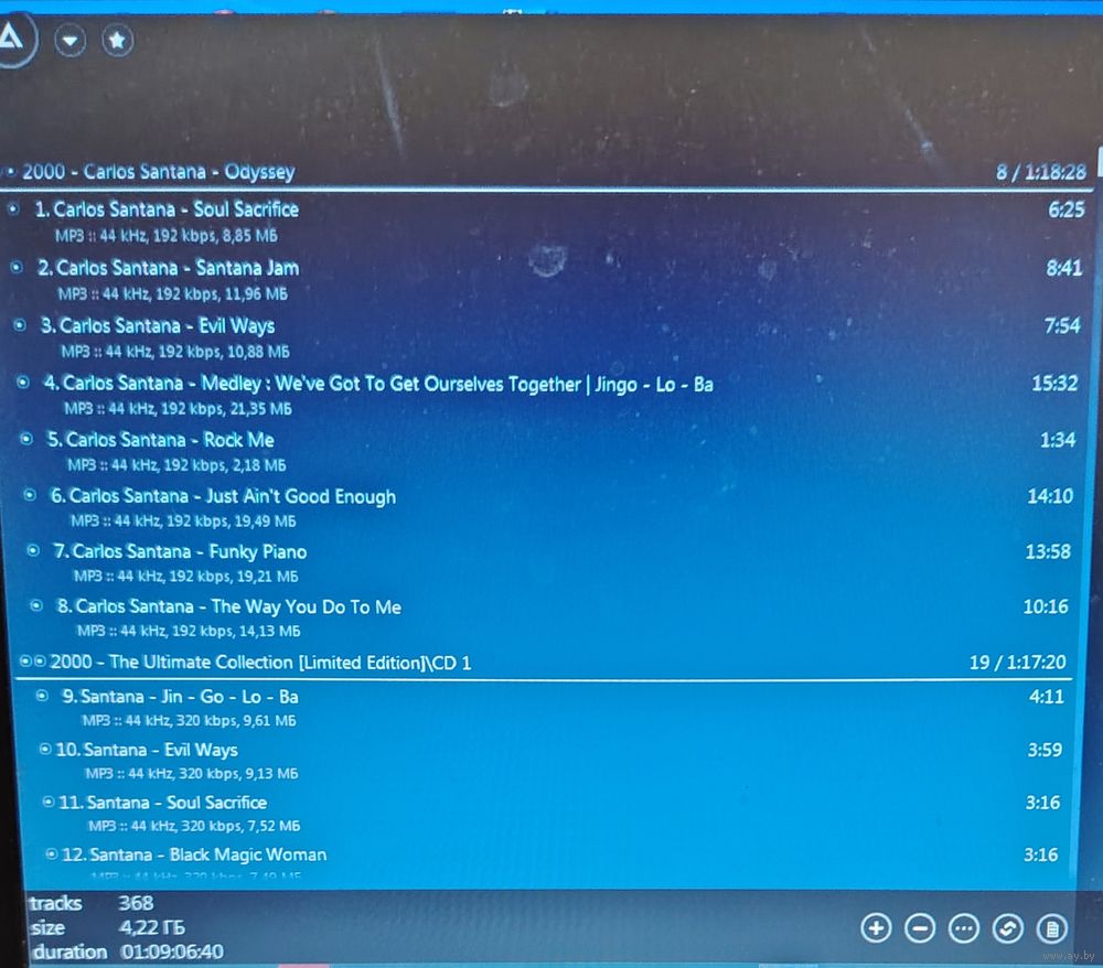 Уважаемые потенциальные покупатели, посетители данного аукциона и просто хорошие люди, случайно открывшие данную страничку! Возможно, начальная цена на данный лот покажется Вам слишком высокой, но тому есть несколько причин: 1) качественно записать DVD MP3 диск не так просто, как может показаться на первый взгляд - подбор контента, тщательная проверка и редактирование файлов и папок, правильный подбор файловой системы для того, чтобы диск воспроизводился на всех устройствах, поддерживающих DVD формат и многие другие нюансы; 2) в последнее время стоимость чистых DVD-R дисков значительно возросла; 3) выставляя лот, я даю 100% гарантию читаемости данного диска, что подтверждается строкой AIMP плеера, который никогда не выдаст конечный результат (общее время, количество треков и занимаемое место музыкальными файлами на диске), если хотя бы один файл во время сканирования либо не считался, либо "подвис". Надеюсь на Ваше понимание.