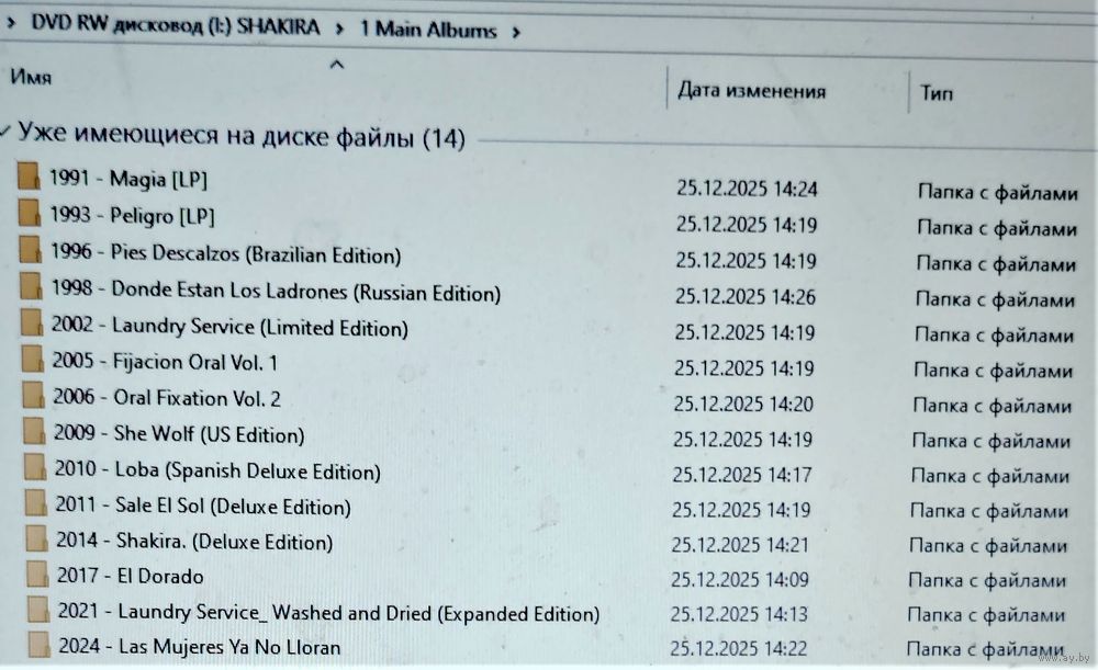 Контент см. фото. При наличии таковых в треки вшиты обложки альбомов. Качество 320 kbps (если напротив названия альбома не указано иное). Покупателям, совершившим покупки на сумму от 50 до 100 руб. скидка 5%, от 101 до 200 руб. - 10%, более 201 руб. - 20%. Заказы на сумму менее 5 руб. с 2024 г. не высылаю.