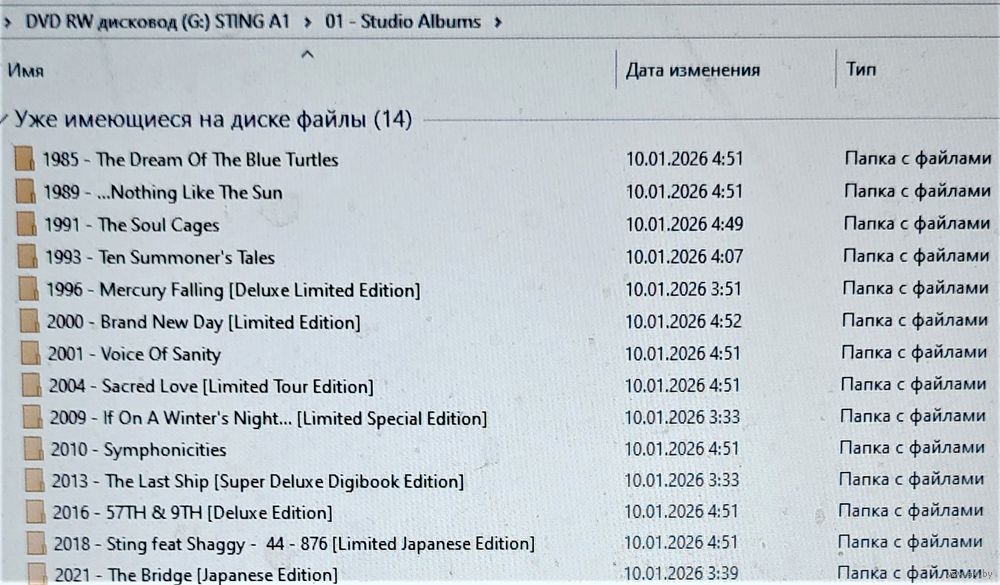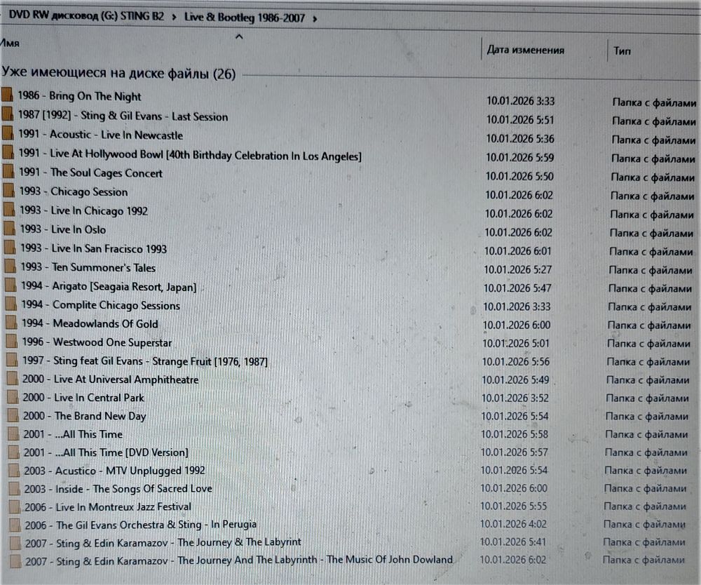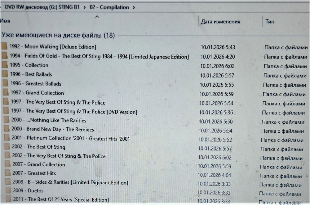 DVD MP3 STING полная дискография - studio original & remastered, live, singles & EP's, botlegs, etc. на 2-x DVD-9 + 1 DVD-5.
