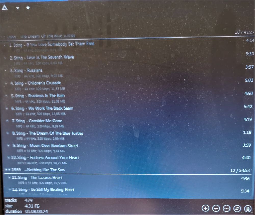 При наличии таковых в треки вшиты обложки альбомов. Качество 320 kbps (если напротив названия альбома не указано иное). Покупателям, совершившим покупки на сумму от 50 до 100 руб. скидка 5%, от 101 до 200 руб. - 10%, более 201 руб. - 20%. Заказы на сумму менее 5 руб. с 2024 г. не высылаю. Ознакомиться с творчеством можно здесь:https://musify.club/artist/sting-1122/discography