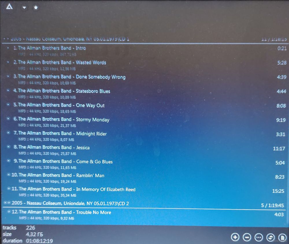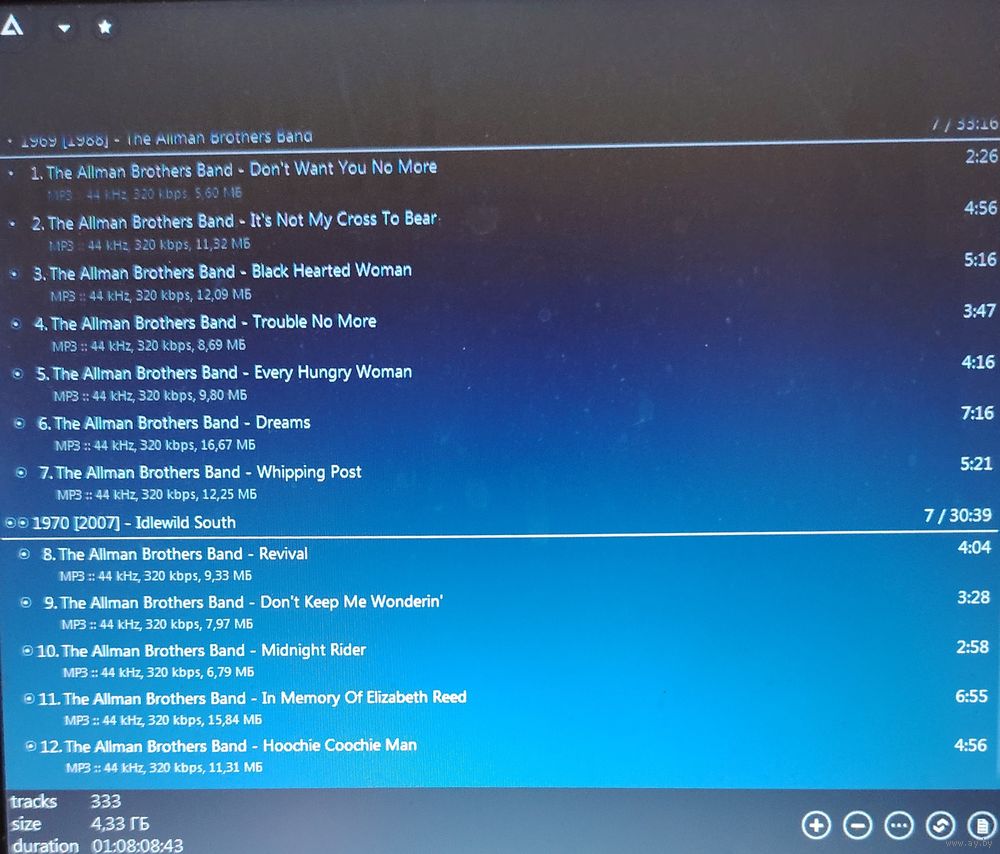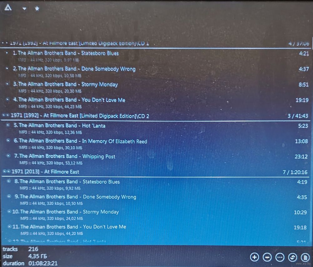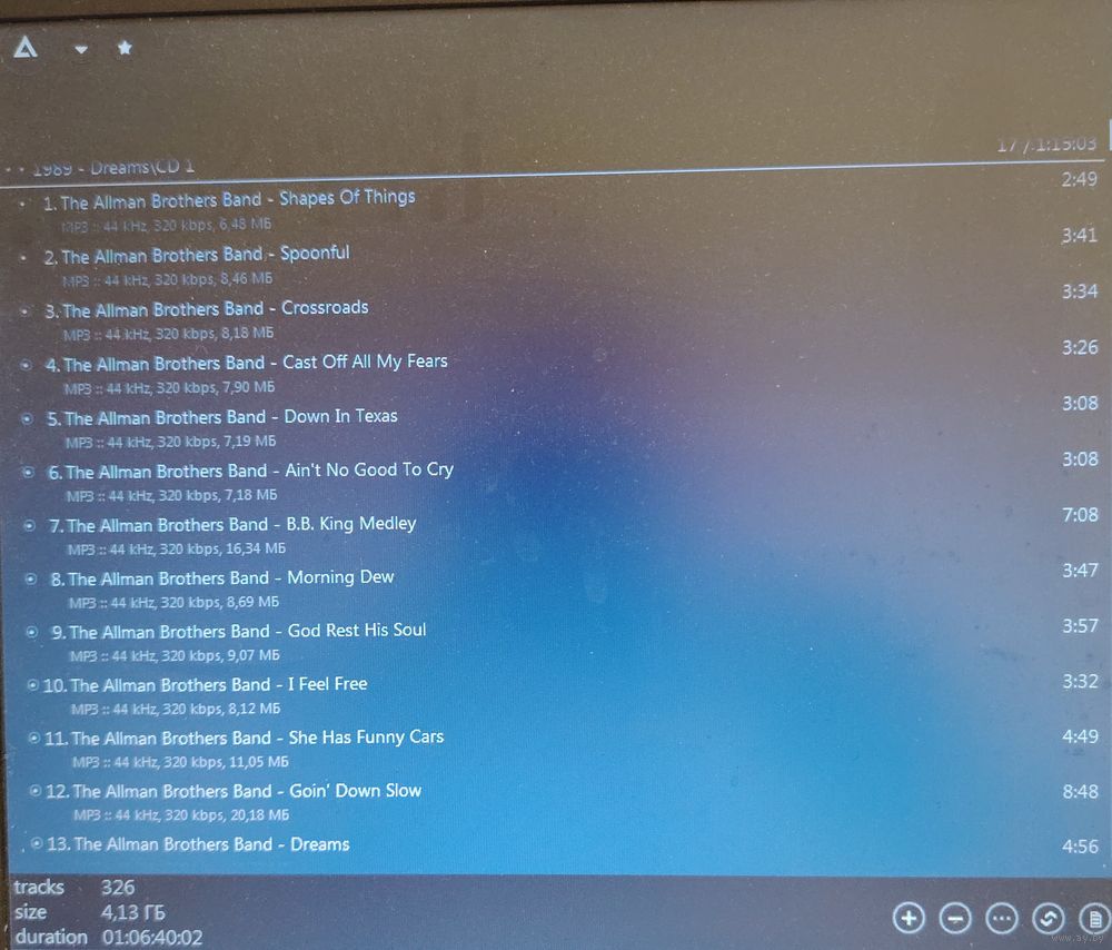 При наличии таковых в треки вшиты обложки альбомов. Качество 320 kbps (если напротив названия альбома не указано иное). Покупателям, совершившим покупки на сумму от 50 до 100 руб. скидка 5%, от 101 до 200 руб. - 10%, более 201 руб. - 20%. Заказы на сумму менее 5 руб. с 2024 г. не высылаю. Ознакомиться с творчеством можно здесь: https://musify.club/artist/the-allman-brothers-band-3214/discography; https://musify.club/artist/the-hour-glass-163111/discography
