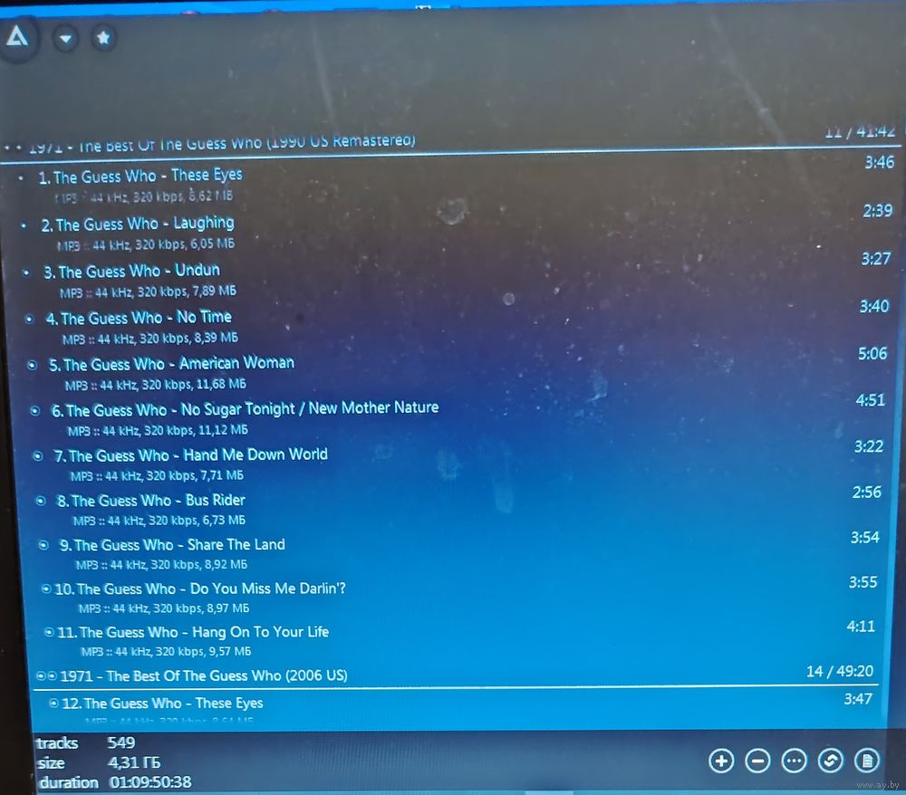 Контент - см. фото конвертов. Скриншоты проверки на считываемость также представлены на фото. Качество 320 kbps (если напротив названия альбома не указано иное). Ознакомиться с творчеством можно здесь: https://musify.club/artist/the-guess-who-121618/discography.
