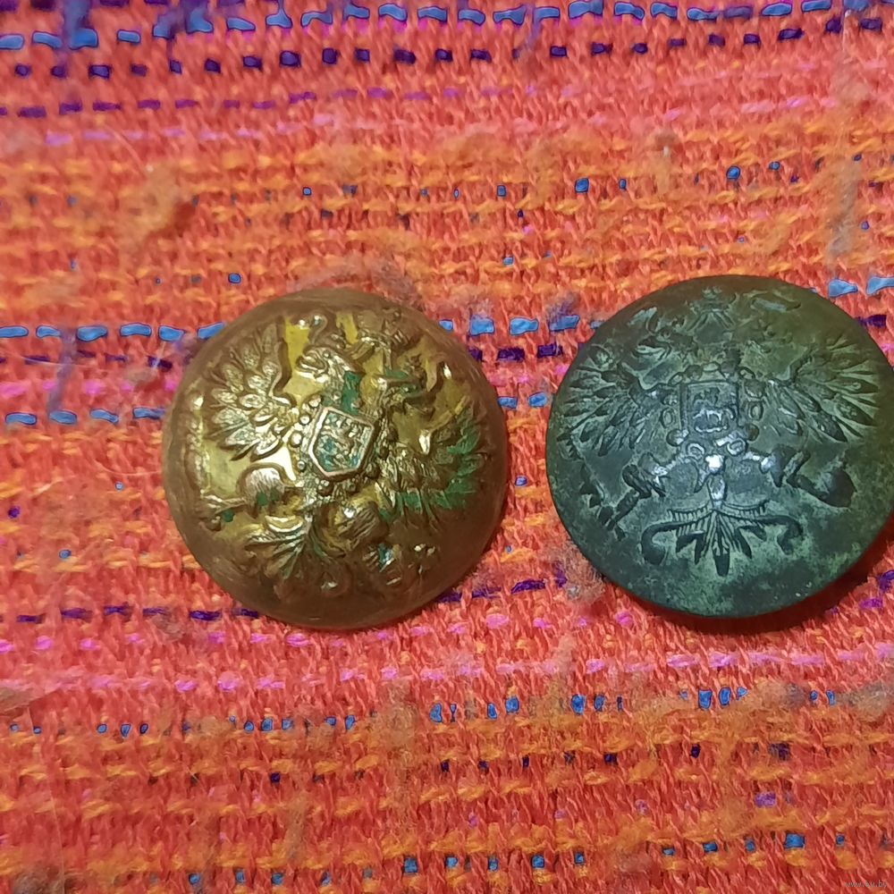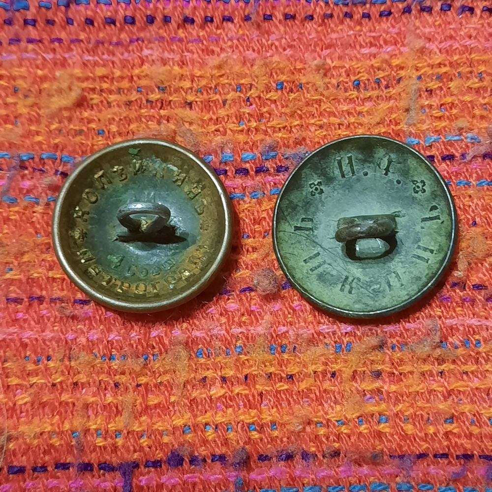Две гербовые пуговицы Российской империи: Копейкинъ * Петроградъ. и Чикинъ И.Ф.
