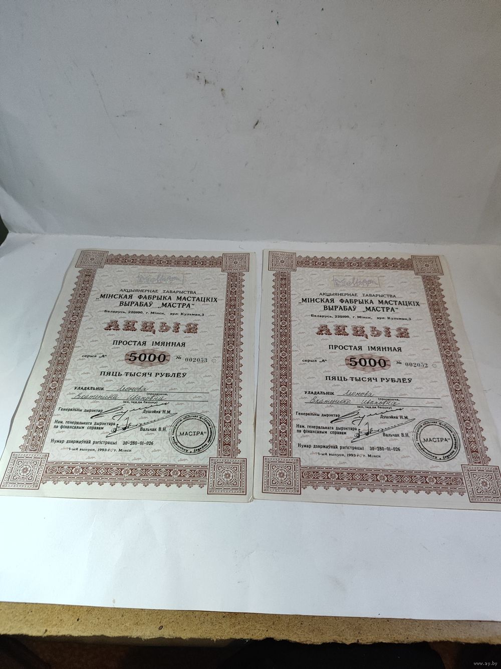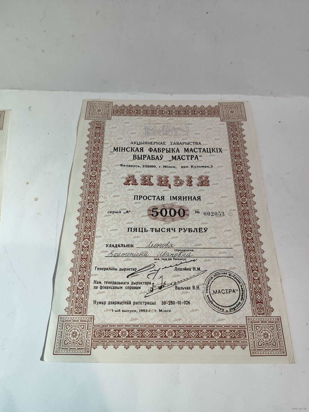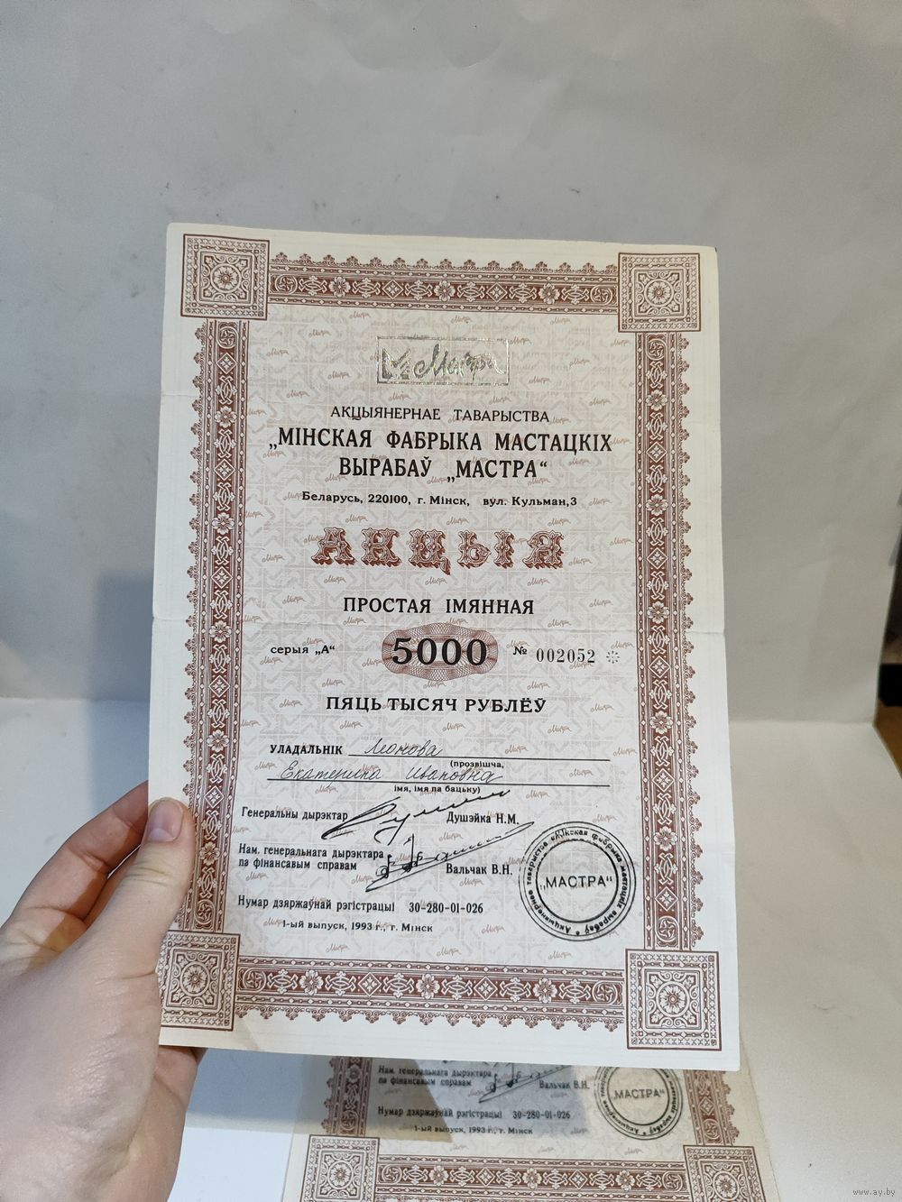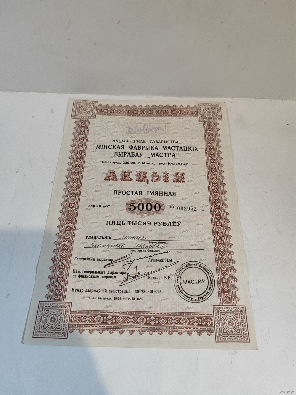 ОАО МАСТРА (1990-2016г.) Состояние на фото.