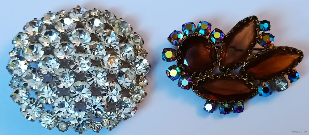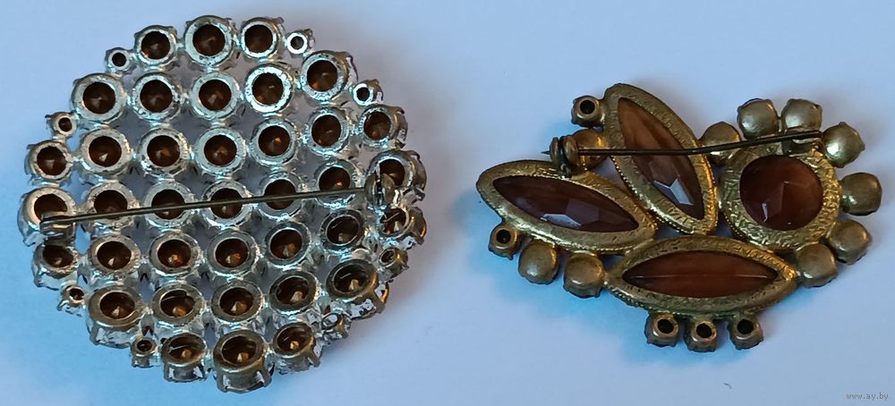 СССР. Красивые. Не частые. У белой отсутствует один маленький камешек внизу,ту коричневой один камешек не родной. Размер первой 5 см, второй 5 на 3.5 см. Доставку оплачивает покупатель при получении лота на Белпочте. Полная предоплата до отправки лота по почте. Качественную упаковку гарантирую! Отправка Белпочтой. Выход на связь в течении трёх дней, выкуп лота в течении семи дней, далее черный список и отрицательный отзыв! Делайте обдуманно Ваши ставки, прежде чем покупать лот, хорошо подумайте, нужен ли он Вам! Ставки не отменяю! Купленный товар возврату не подлежит.Спасибо за проявленный интерес к данному лоту! Всем удачи в торгах!