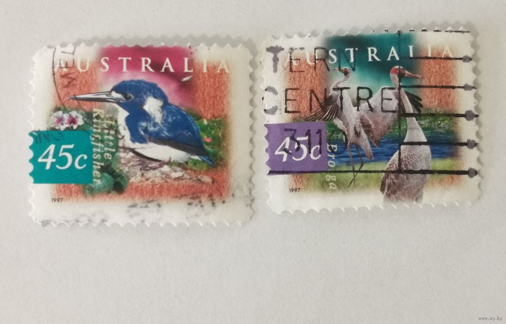 Две марки из серии "Болотные птицы Австралии"