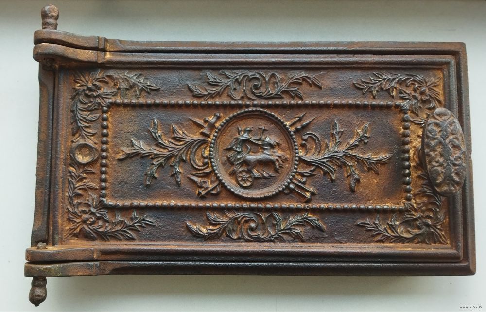 Дверца поддувальная, стандартная. Мальцовское литьё, Царская Россия. Конец 19, начало 20 в. В очень хорошем состоянии. Сейчас с такой детализацией печное литьё не производят. Можно в коллекцию, можно по прямому назначению. Небольшой скольчик рамы, на эксплуатационные свойства не влияет, учтено в цене.