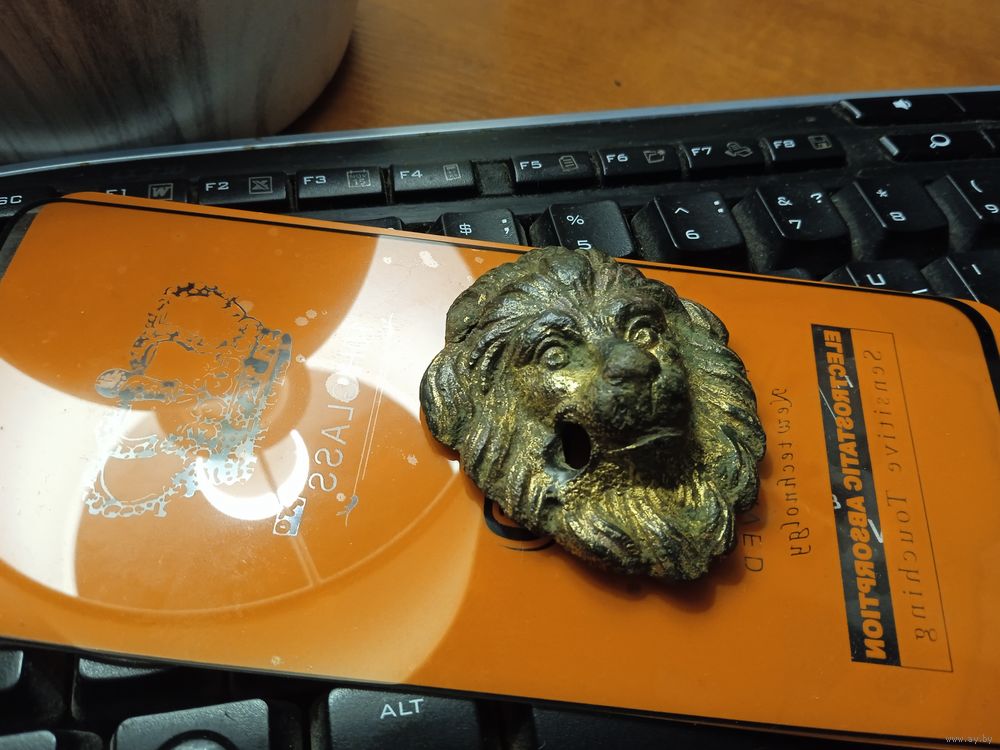 Дверная ручка, дверной молоток, стукало. Остатки позолоты. Литье. Не магнит, или бронза или латунь. 5,5х4.7см.