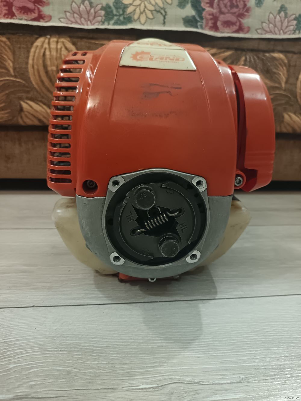 Двиганель от мотокосы 4Т Eland, четырёхтактный, менялся поршень, кольца, подшипники, прокладка из картона подтекает маслом. Заводится 1 раз из ста. Надоело ковыряться в нём.
