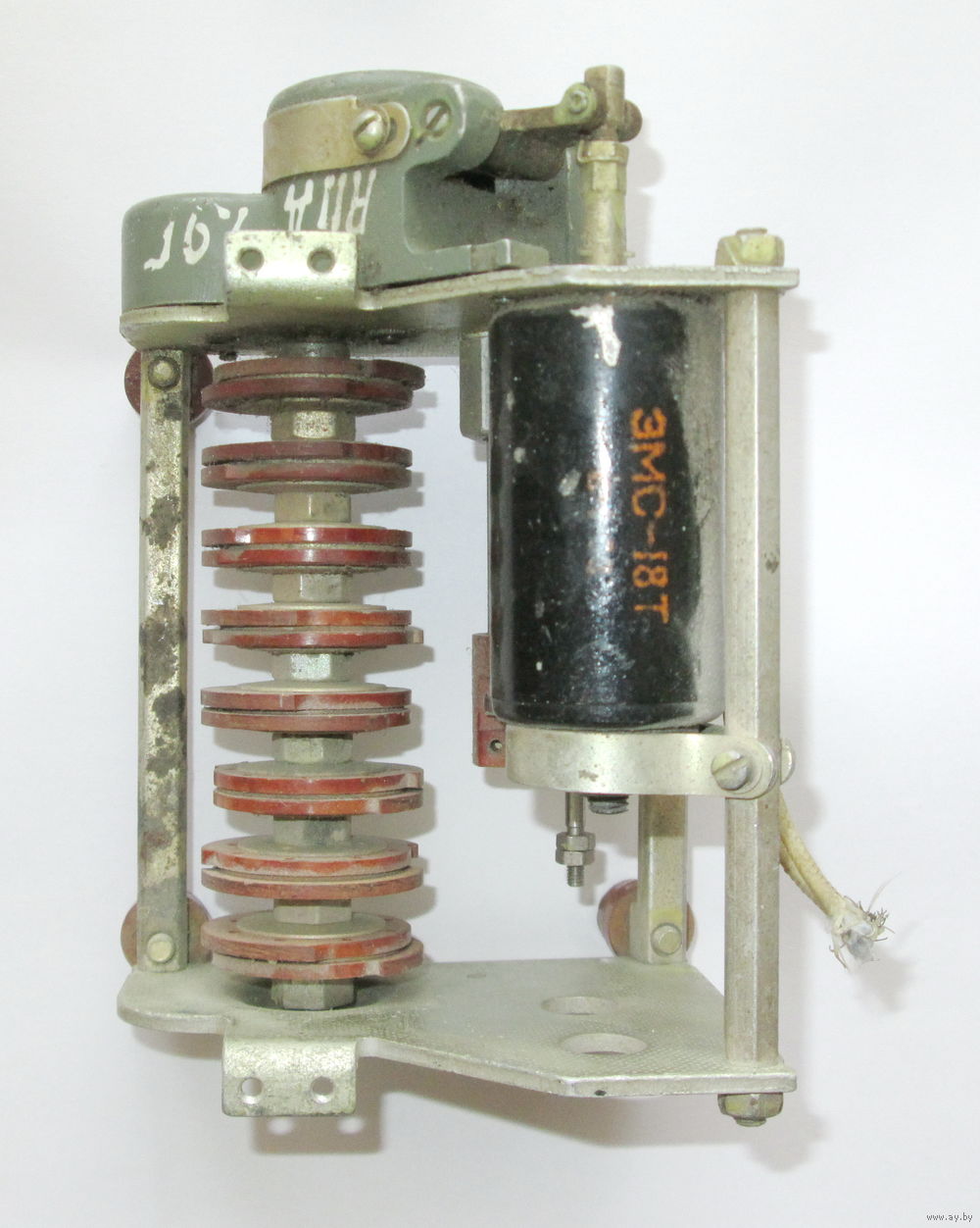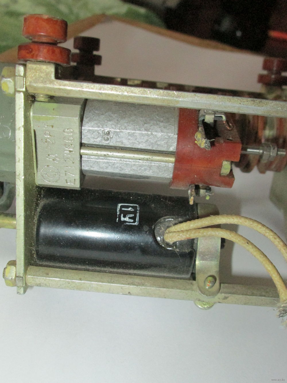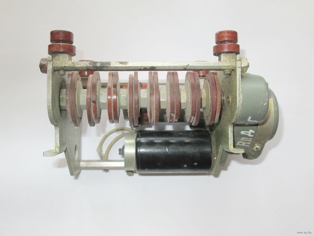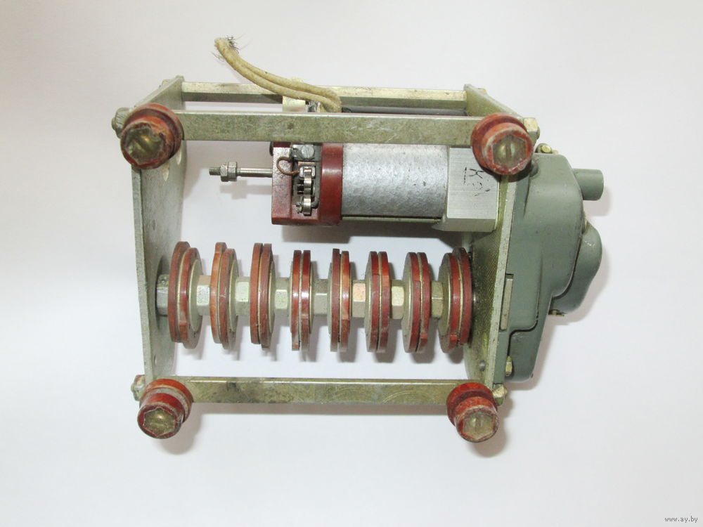 Передаточное число большое. При включении электромагнита передаточное число уменьшается. Вращение передается на вал с пластинами.