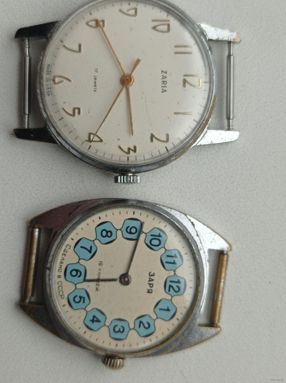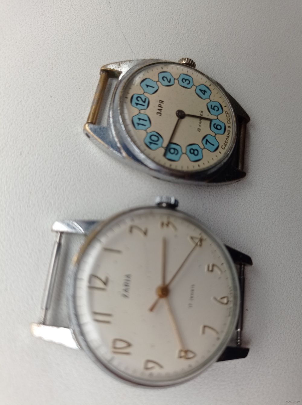 Двое часов Заря. Во всех часах балансы целы. Некоторое время идут и останавливаются. Требуется обслуживание, долго лежали в коллекции без хода.