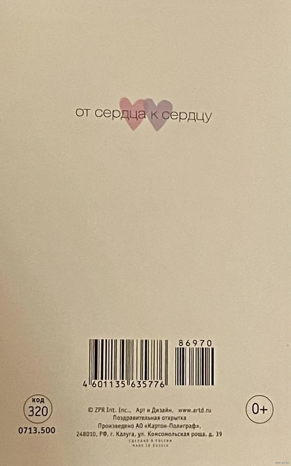 ДВОЙНАЯ ЧИСТАЯ ОТКРЫТКА. 10х16 см.