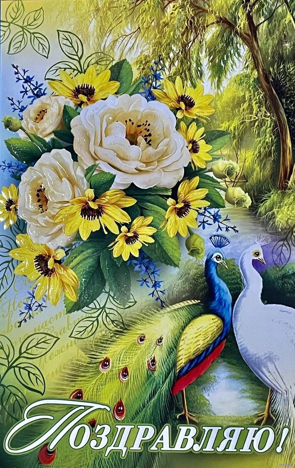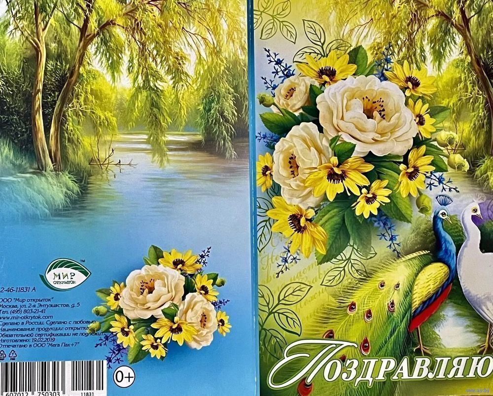 ДВОЙНАЯ ЧИСТАЯ ОТКРЫТКА. ПОЗДРАВЛЯЮ. РАЗМЕР 12 * 19 см.