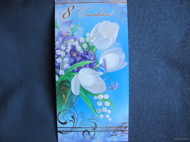 Двойная поздравительная открытка с 8 марта (с тиснением) 2