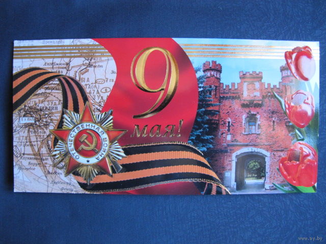 Двойная поздравительная открытка с Днем Победы (с тиснением, 2008 г.)