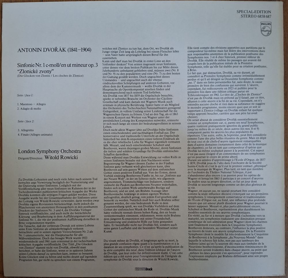 Dvorak - London Symphony Orchestra, Witold Rowicki – Symphony No. 1 "The Bells Of Zlonice"