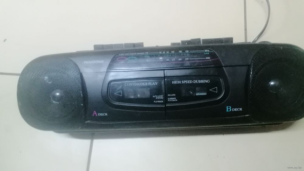 Двухкассетник радиоприёмник Panasonix. Несмотря на возрос , чётко ловит станции и воспроизводит аудиокассеты . Даже функция перезаписи с кассеты на кассету работает .