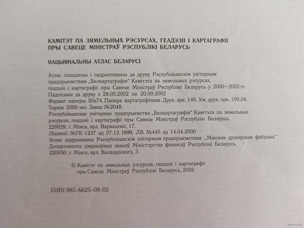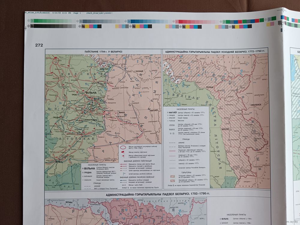 Двухсторонний типографский лист (страницы 269, 270, 271 и 272) из Национального атласа Беларуси 2002 года одним лотом, имеются в наличии другие листы, см. описание лота (3893)