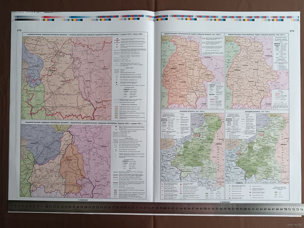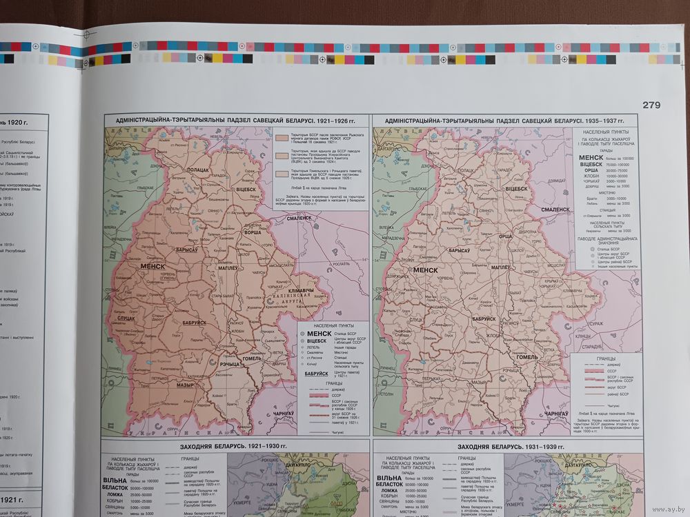 Двухсторонний типографский лист (страницы 277, 278, 279 и 280) из Национального атласа Беларуси 2002 года одним лотом, имеются в наличии другие листы, см. описание лота (3906)