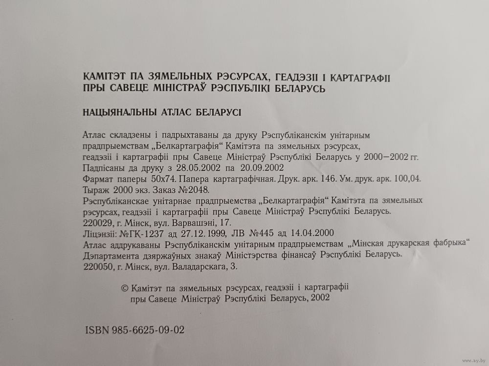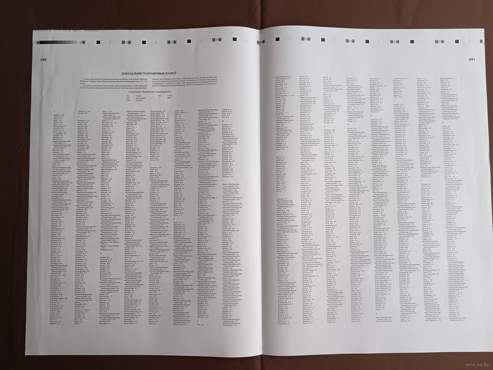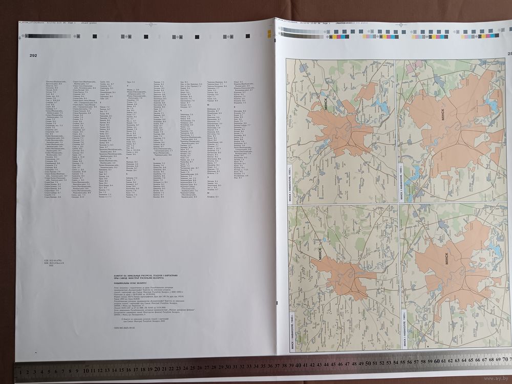 Двухсторонний типографский лист (страницы 289, 290, 291 и 292) из Национального атласа Беларуси 2002 года одним лотом, имеются в наличии другие листы, см. описание лота (3895)
