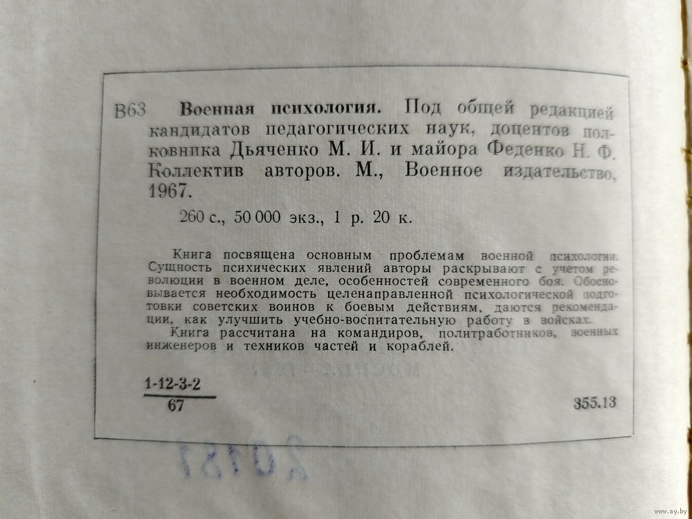 Книга посвящена основным проблемам военной психологии. Сущность психических явлений авторы раскрывают с учетом революции в военном деле, особенностей современного боя. Обосновывается необходимость целенаправленной психологической подготовки советских воинов к боевым действиям, даются рекомендации, как улучшить учебно-воспитательную работу в войсках.