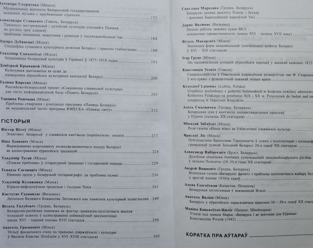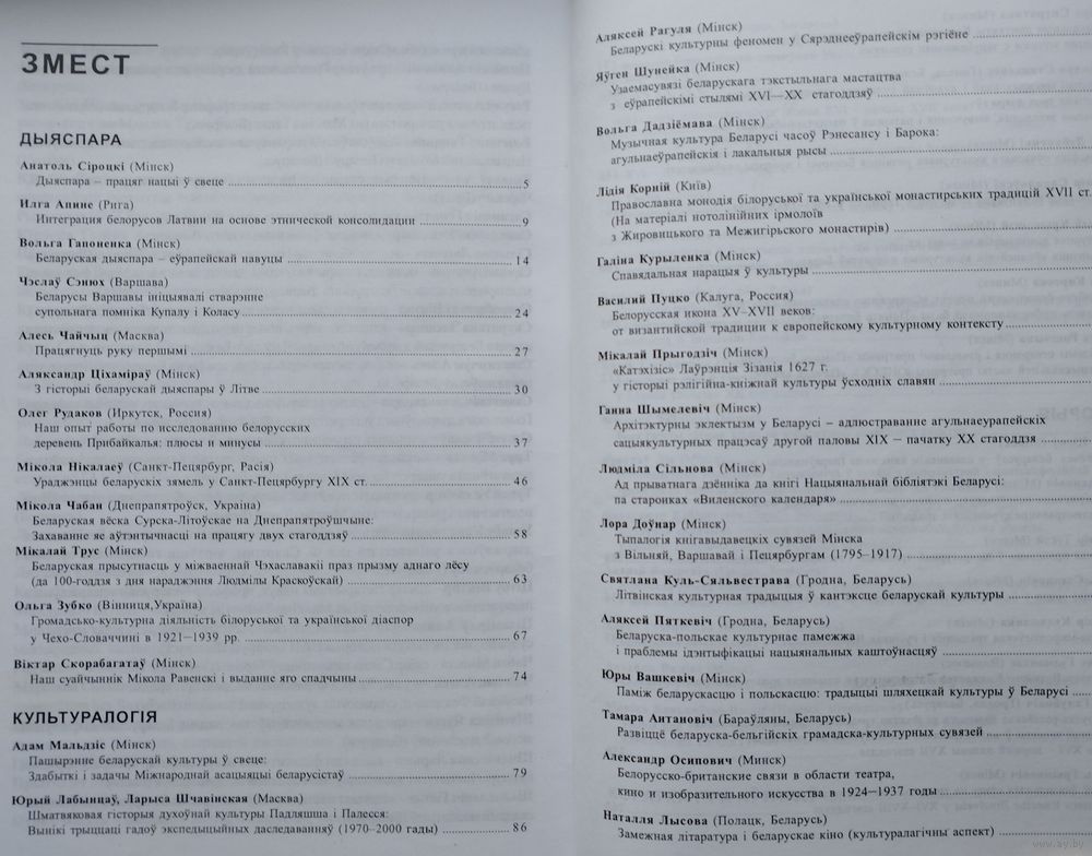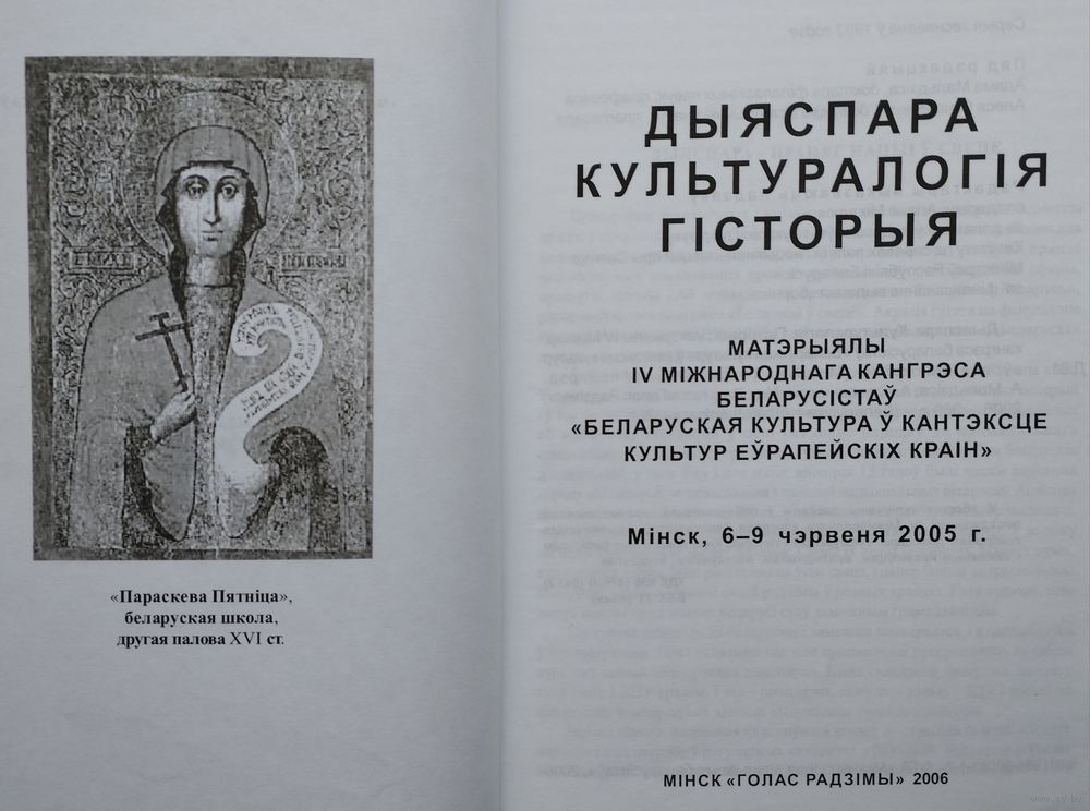 "Дыяспара. Культуралогія. Гісторыя: Матэрыялы ІV Міжнар. кангрэса беларусістаў «Беларуская культура ў кантэксце культур еўрапейскіх краін" (Мінск, 6-9 чэрв. 2005 г.) / Пад рэд. А. Мальдзіса, А. Смаленчука. — Мінск: Рэд. газ. «Голас Радзімы», 2006.