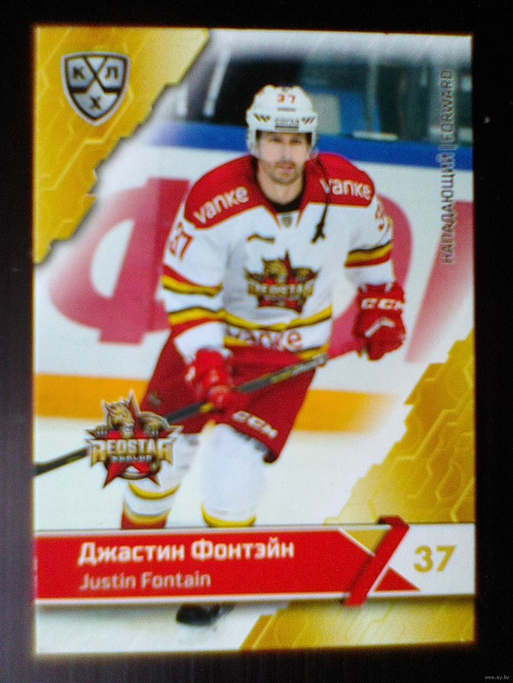 Джастин Фонтэйн - "Куньлунь Ред Стар" Пекин - Базовая Карточка - 11 сезон КХЛ - 2018/19 года - Экс Игрок минского "Динамо".