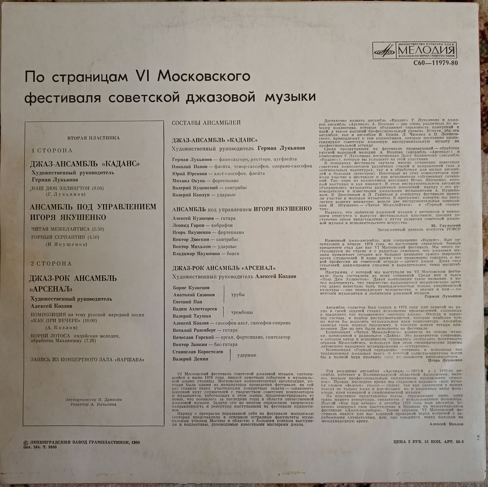 Джаз-78. По страницам VI Московского фестиваля Советской джазовой музыки. Вторая пластинка.
