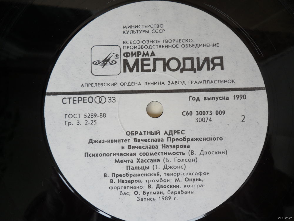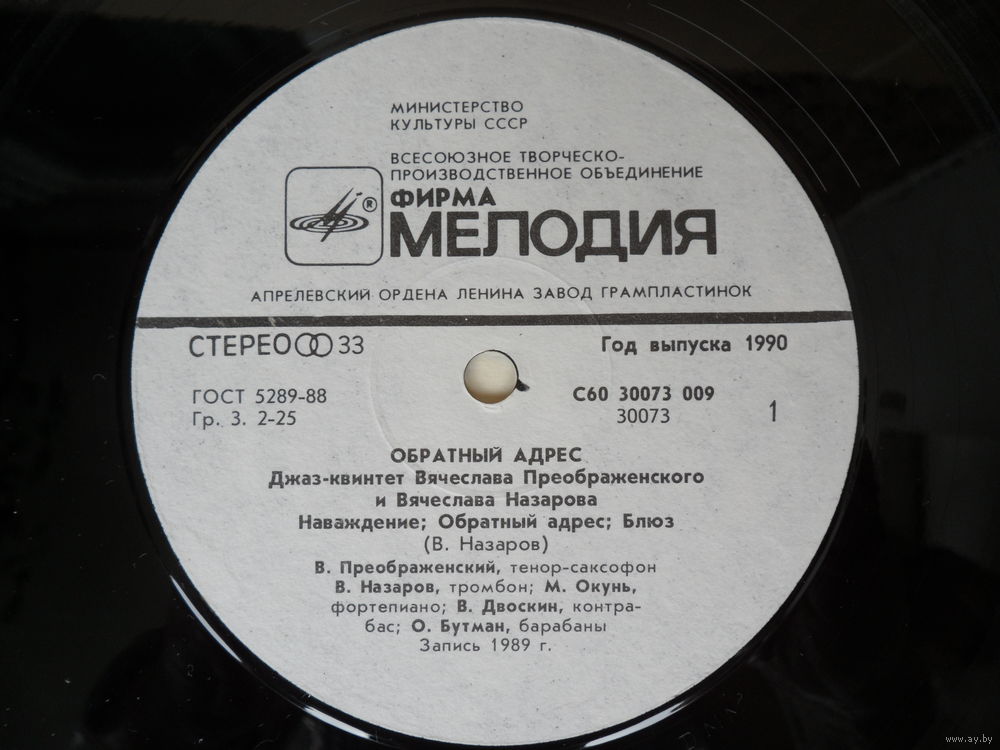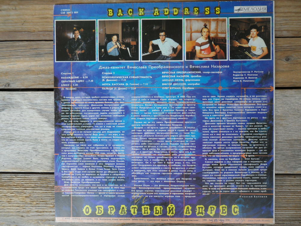 Джаз-квинтет Вячеслава Преображенского и Вячеслава Назарова - Обратный адрес - АЗГ, 1990 г.