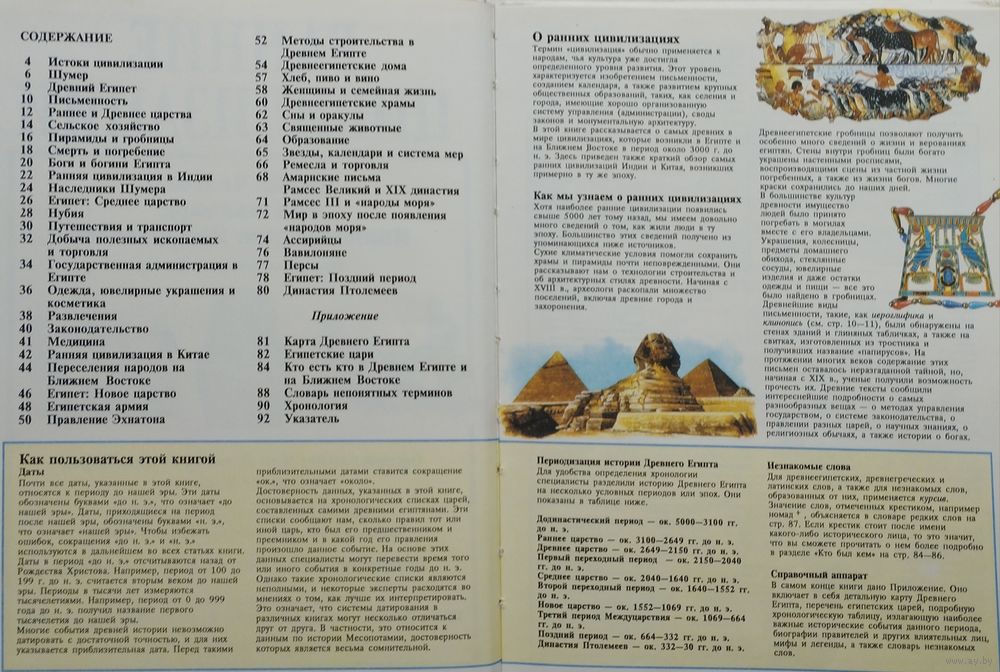 Большой энциклопедический формат. Книга "Ранние цивилизации" рассказывает о расцвете первых мировых цивилизаций Египта и Месопотамии, охватывая период с 3 тыс. лет до нашей эры до Римского завоевания. Здесь также говорится о первых цивилизациях Индии и Китая, которые существовали в этот период. Издание прекрасно иллюстрировано, в нем множество карт, диаграмм, а также включает перечень основных исторических дат.