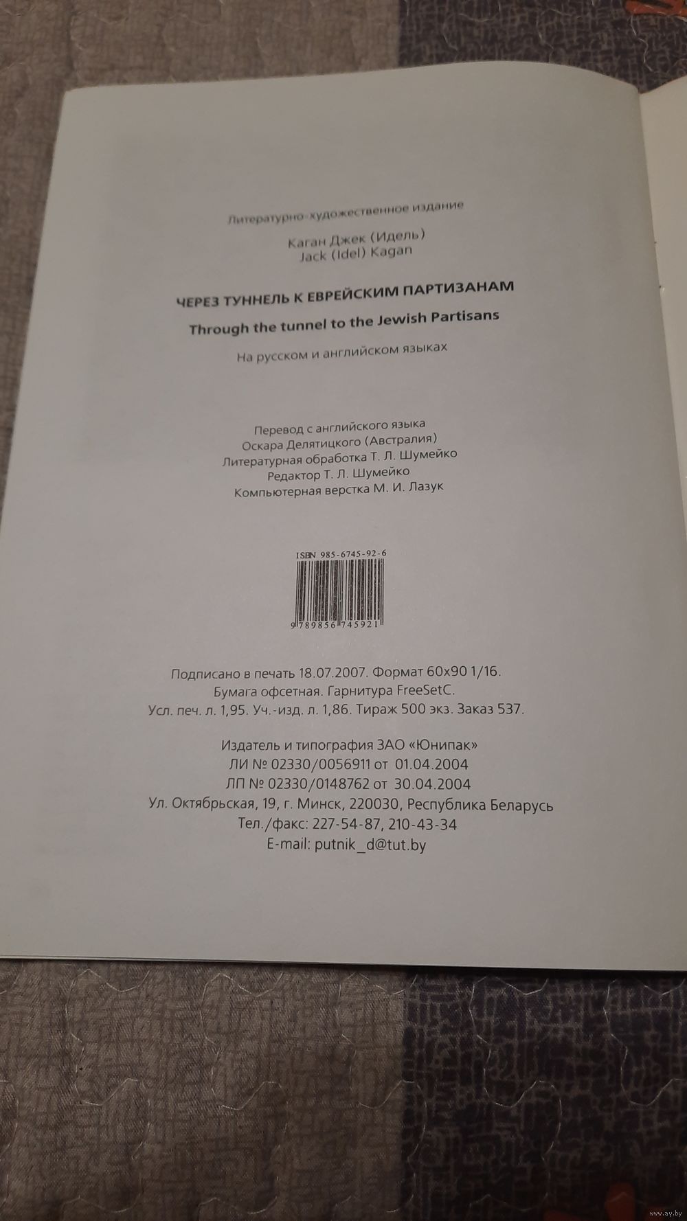 Джек (Идель) Каган Через тонель к еврейским партизанам, Минск 2007г.