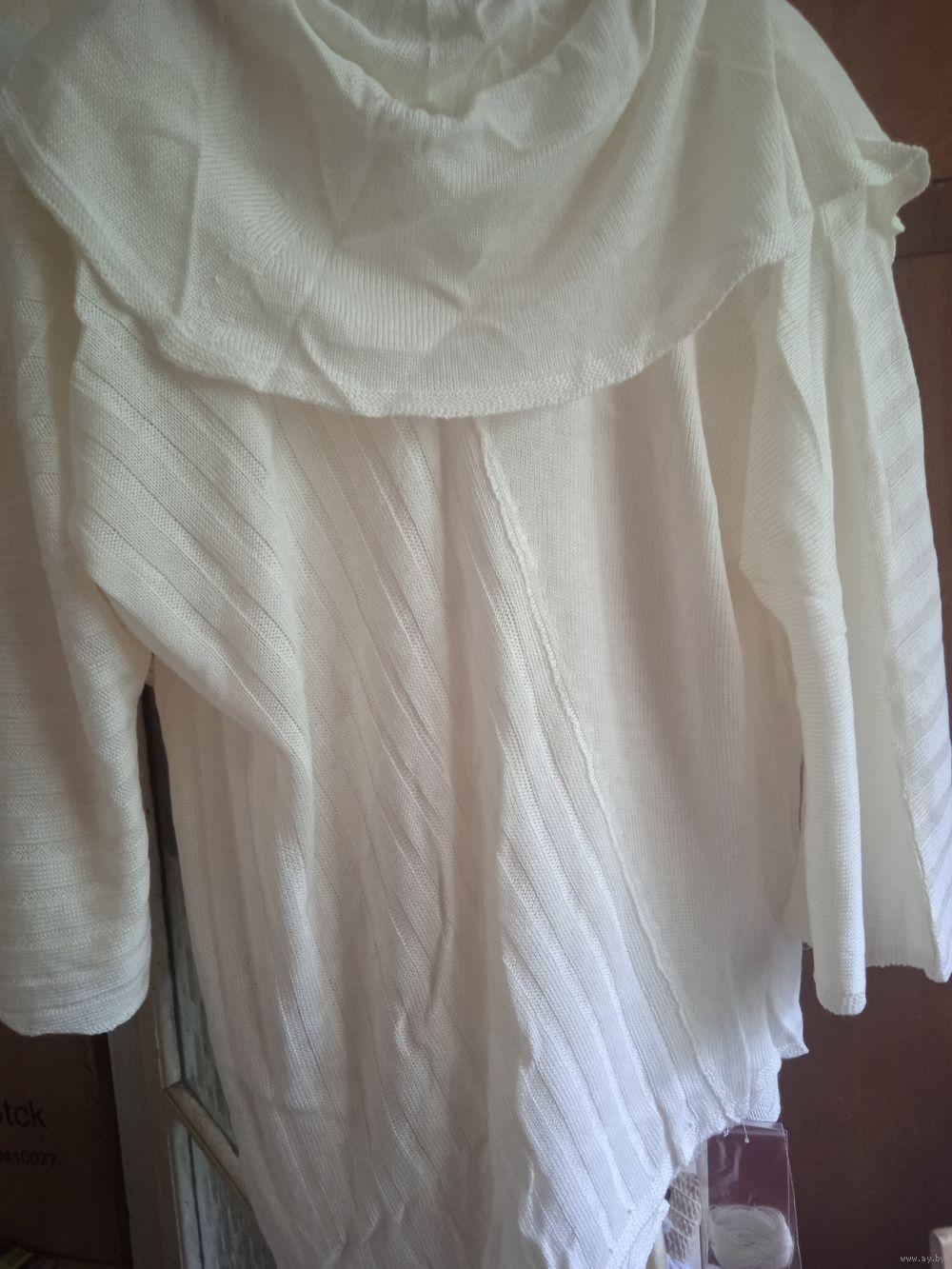 Трикотажное полотно идёт по косой. Воротник 37см можно выкладывать по разному: шалька, хомут и др. В составе 50 % - вискоза, 50-пан.