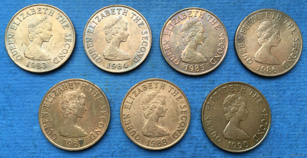 Джерси 2 пенса 1983, 1984, 1985, 1986, 1987, 1988, 1990